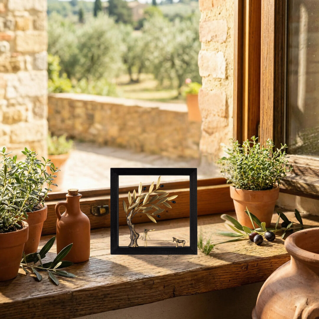 The villager with the donkey to the Hellenic countryside. The olive tree in Ancient Greece was a symbol of the Olympic ideal, since an olive branch was the only prize for the Olympic champions. The olive symbolizes peace, victory, honor and prosperity.
