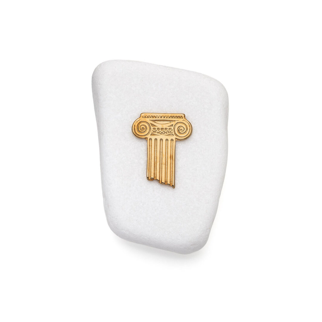 Bring the elegance and grandeur of classical Greek architecture into your home with this gold-plated Ionic column decorative accent, mounted on Thassos marble.