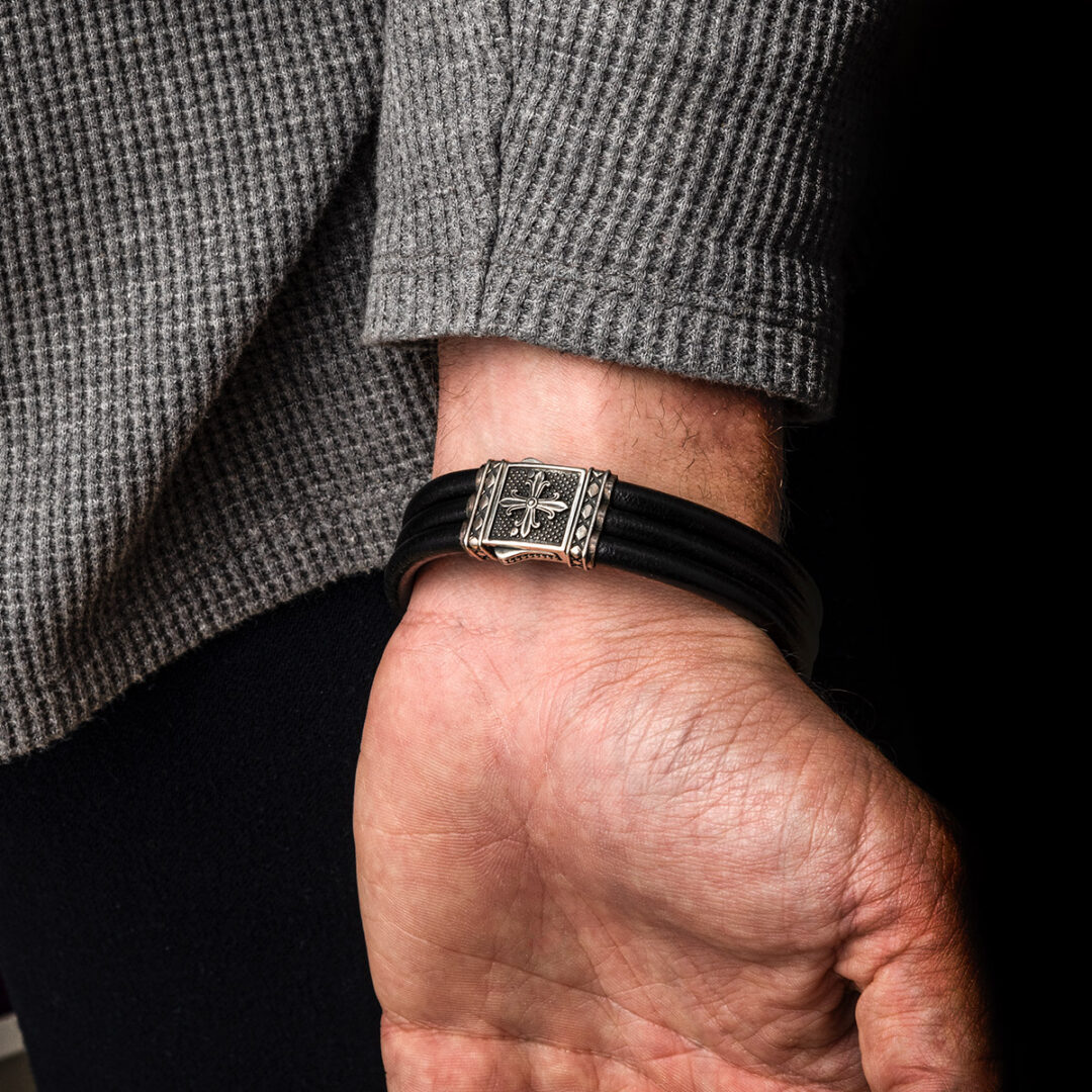 Ivy Cross Leather Bracelet – Sterling Silver Yianni Jewelry