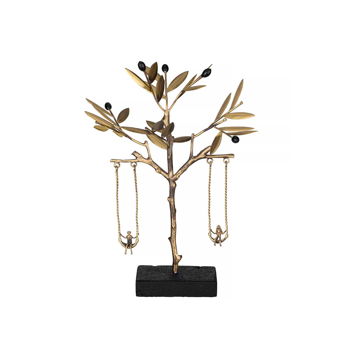 This handmade bronze sculpture features kids playing under the olive tree on a natural lava stone base, capturing both joy and heritage.