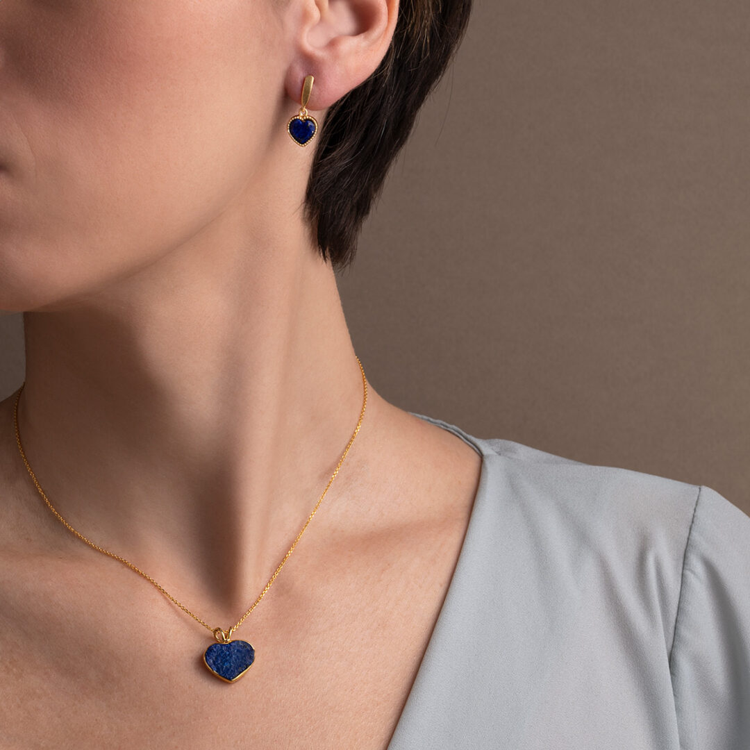Lapis heart Necklace – 925 Sterling Silver and Gold Plated