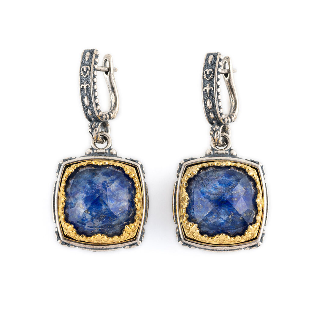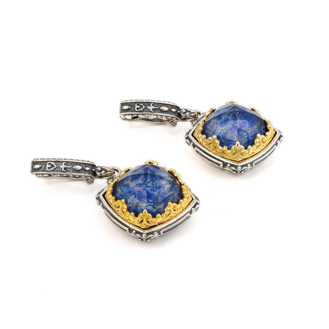 A very elegant pair of earrings decorated with Lapis Lazuli gemstone.