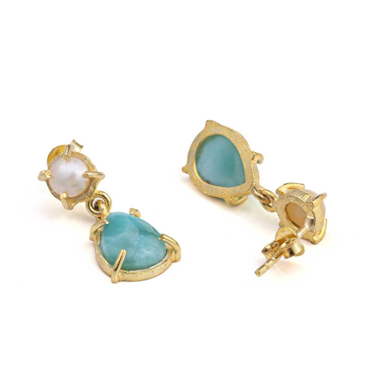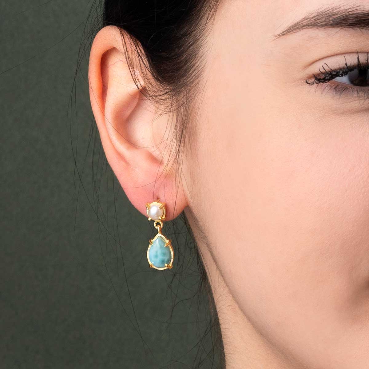 Larimar Drop Pearl Earrings