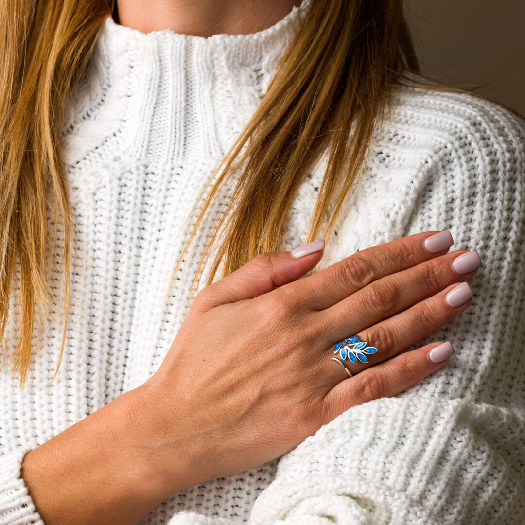 Ring inspired by the olive leaf symbol. The olive tree in Ancient Greece was a symbol of the Olympic ideal, since an olive branch was the only prize for the Olympic champions. The olive tree symbolizes peace, victory, honor and prosperity.