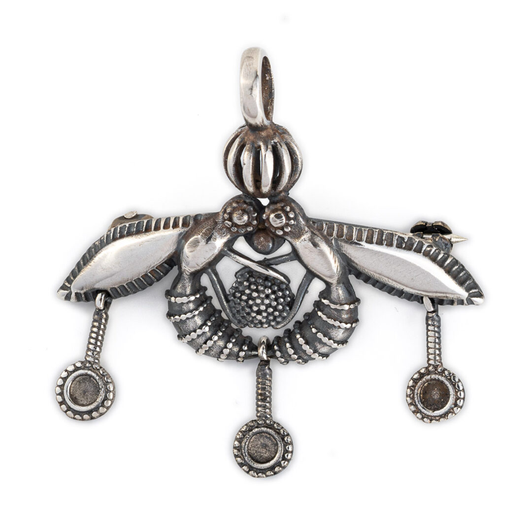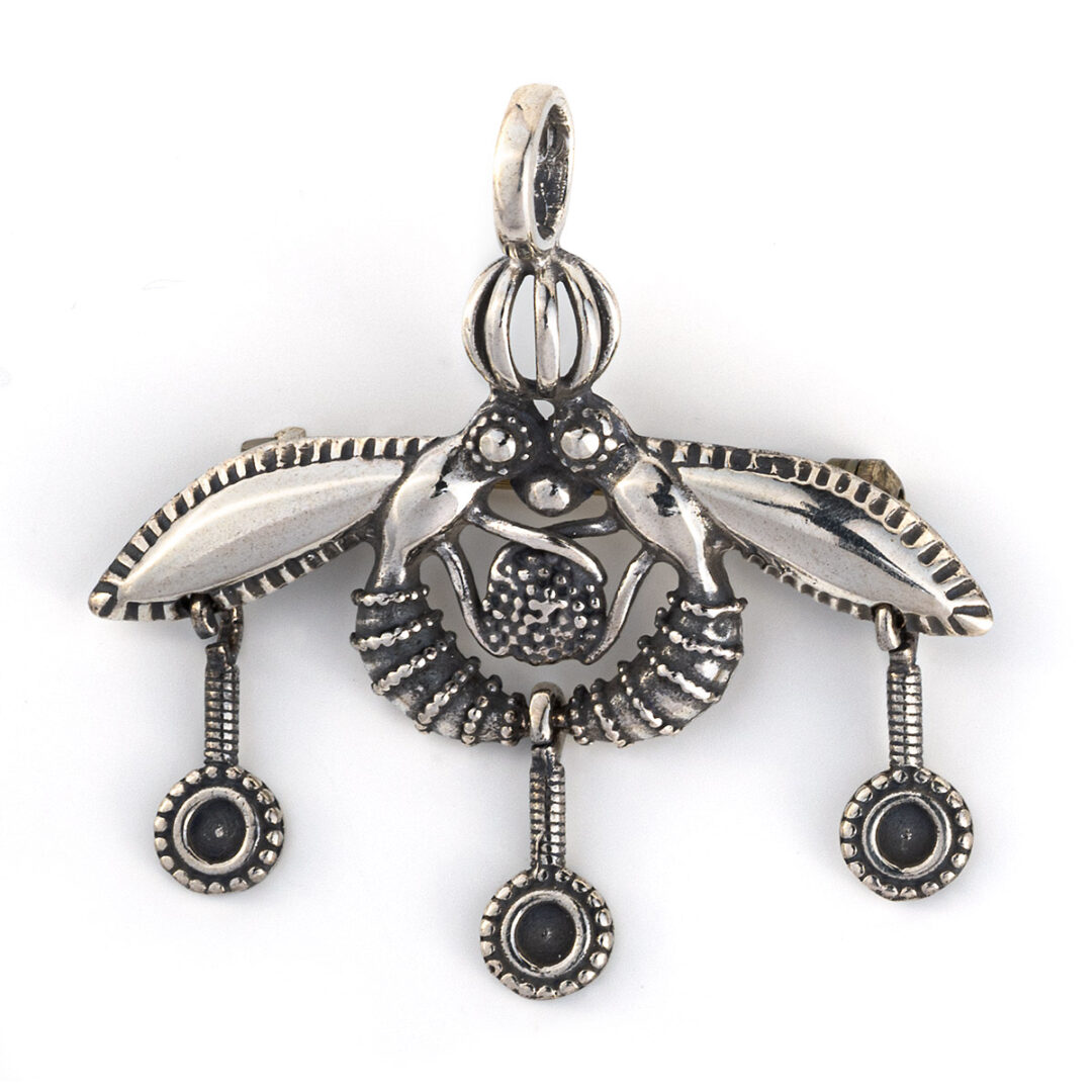 Malia bees pendant and brooch in sterling silver