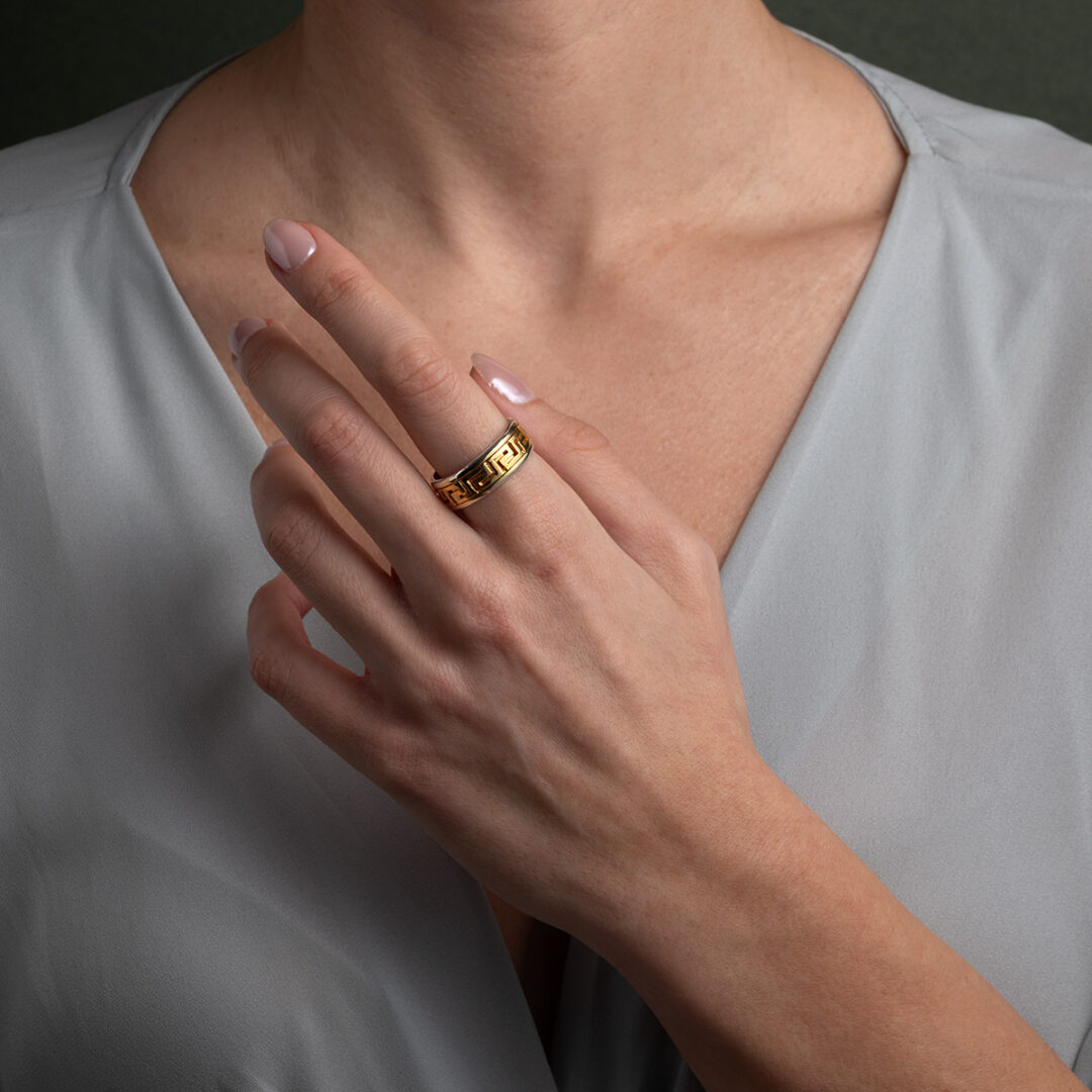 Meandros design is a decorative border constructed from a continuous line, shaped into a repeated motif. Such a design is also called the Greek fret or Greek key design, although these are modern designations. On the one hand, the name “meander” recalls the twisting and turning path of the Meander River in Asia Minor, and on the other hand, as Karl Kerenyi pointed out, “the meander is the figure of a labyrinth in linear form” the meaning is that there is no beginning and no end in some cases so it becomes the symbol of long life and eternity.