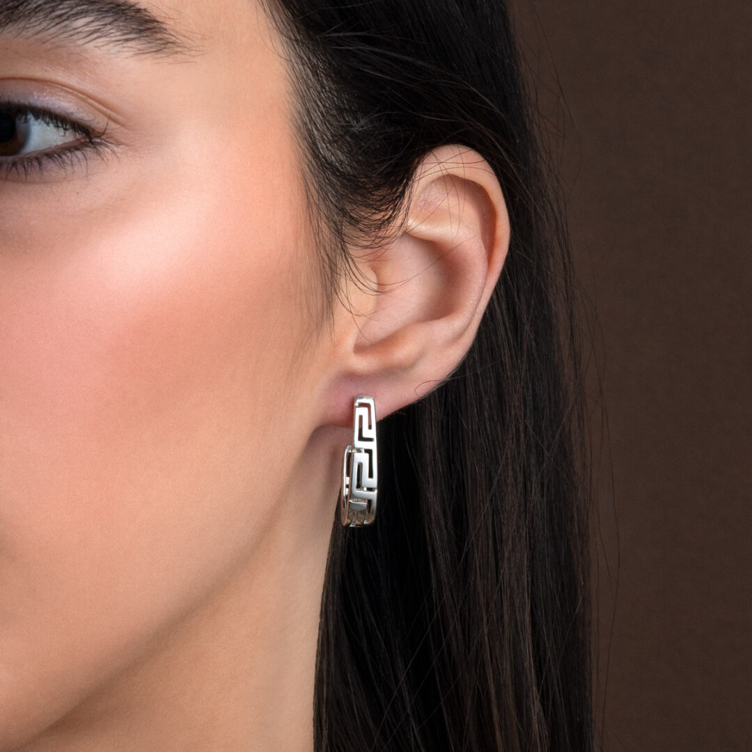 Earrings inspired by the Greek Key meander symbol.