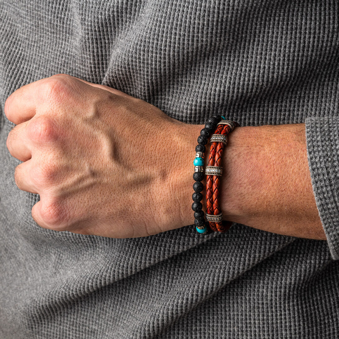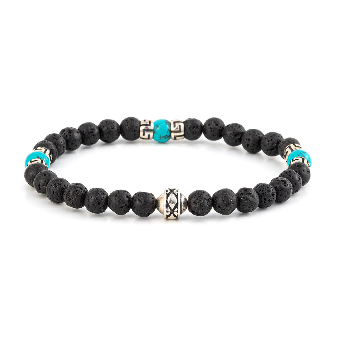 Meander Bracelet – 925 Sterling Silver with Lava Beads