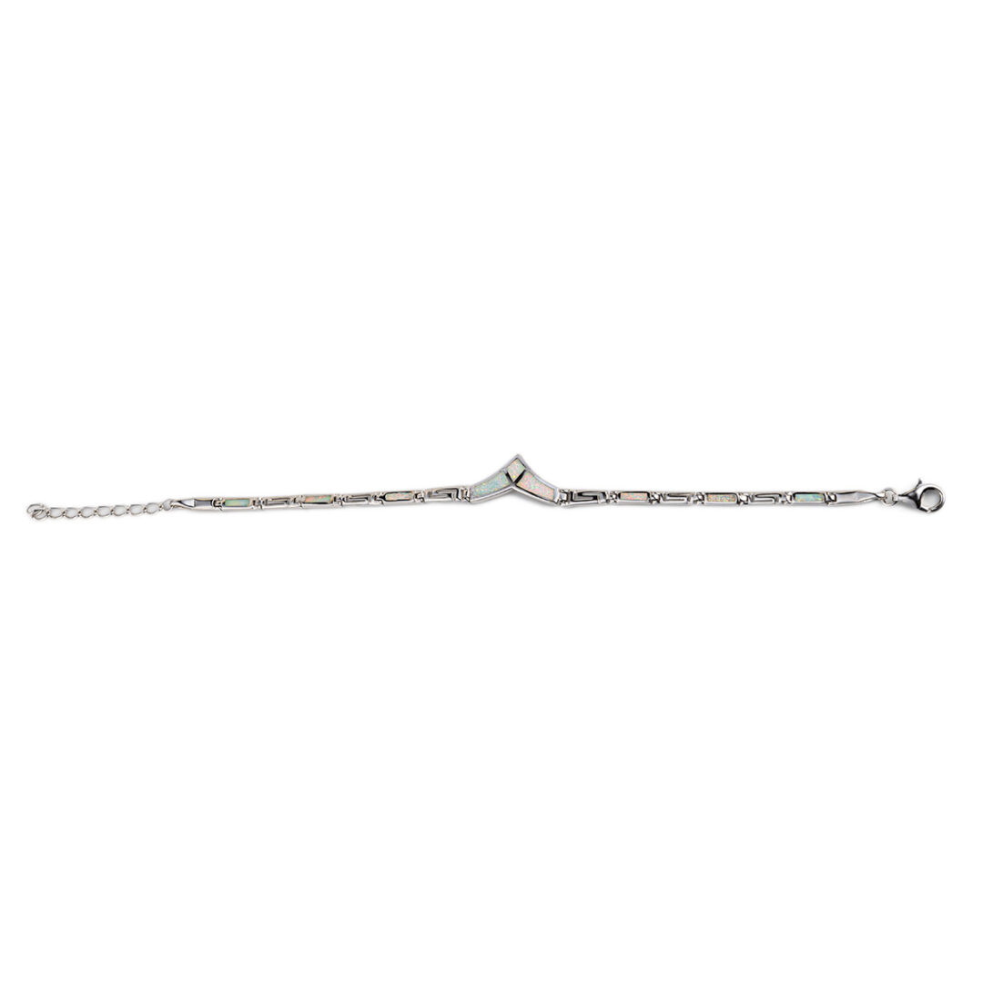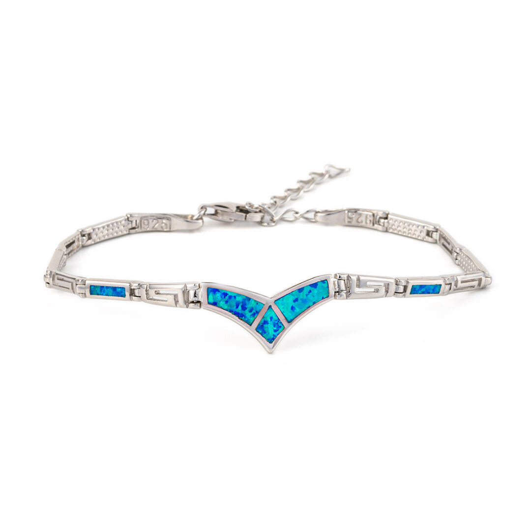 Greek design sterling silver Meander bracelet. A sterling silver bracelet featuring the meander symbol with blue opal stones.
