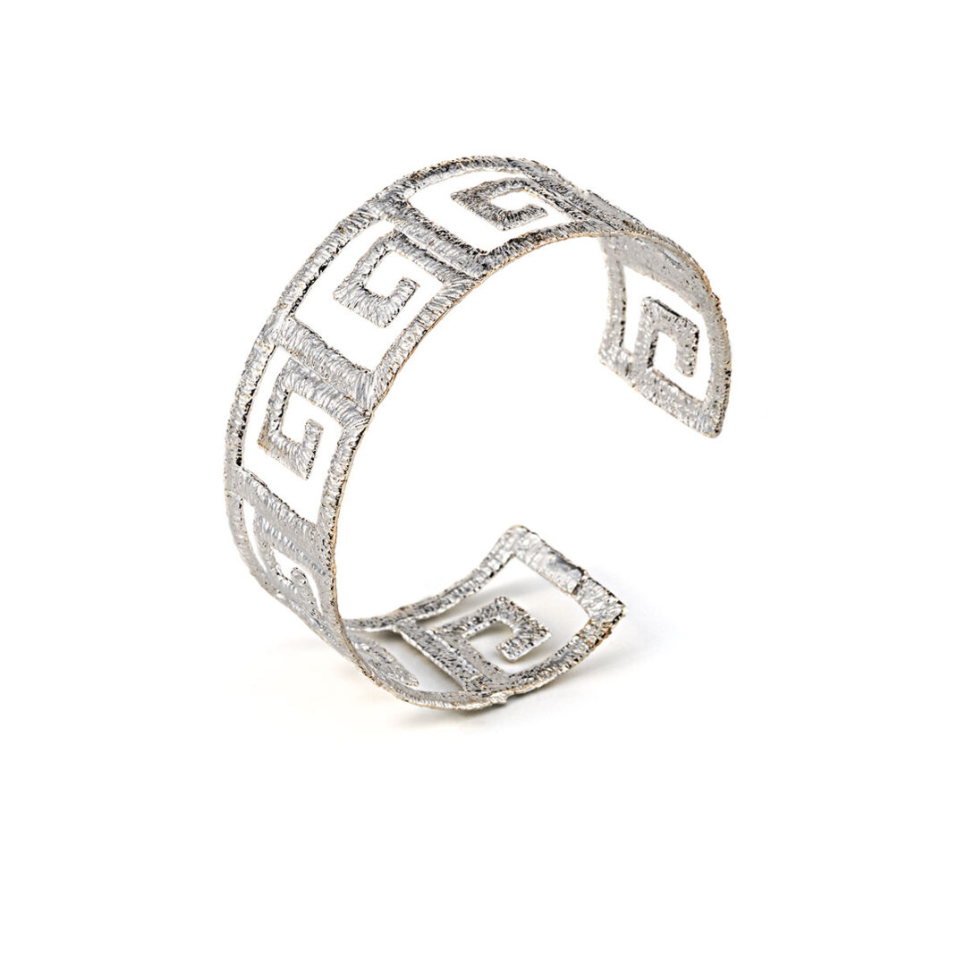 Sterling Silver cuff bracelet inspired by the ancient Meander symbol.