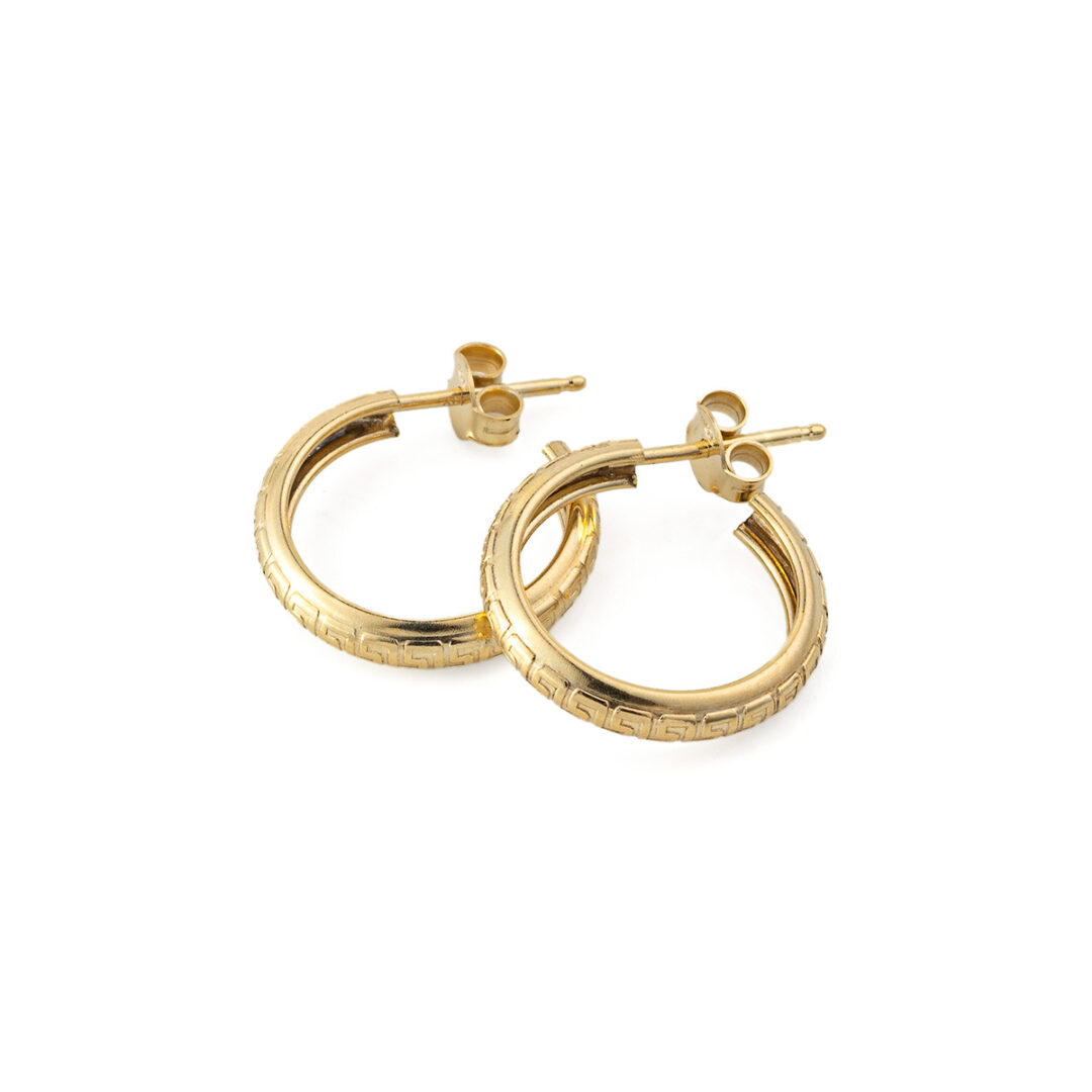 Meander Greek Key Hoop Earrings – 925 Sterling Silver and Gold Plated