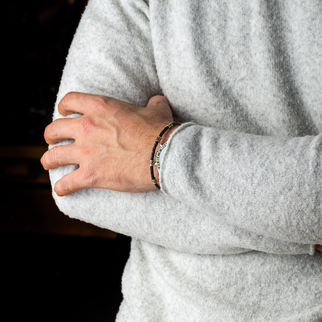 Meander Grey Key Leather Bracelet – Sterling Silver K14 Gold