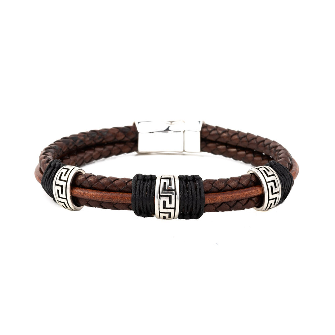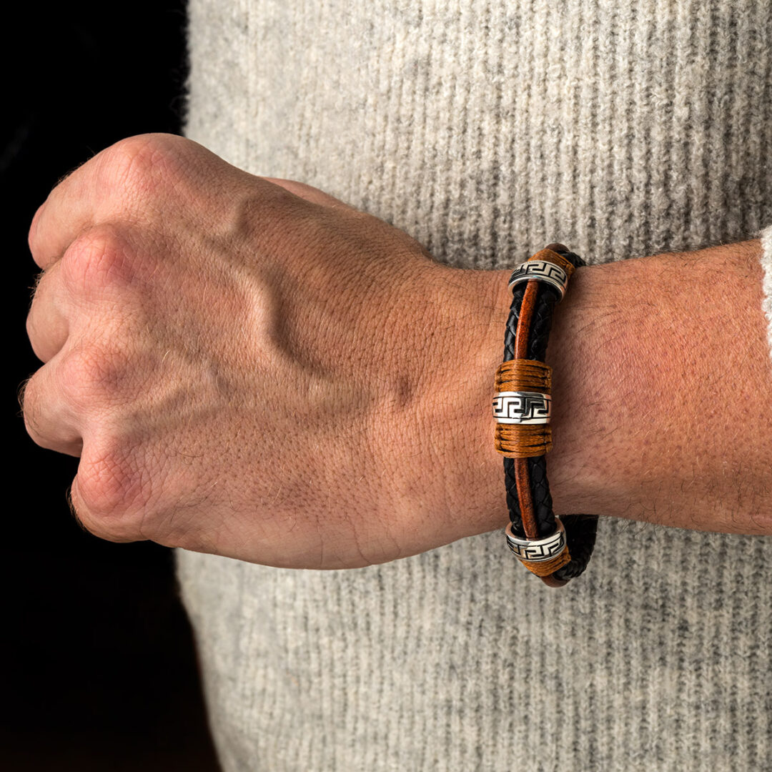 Meander Leather Bracelet – 925 Sterling Silver