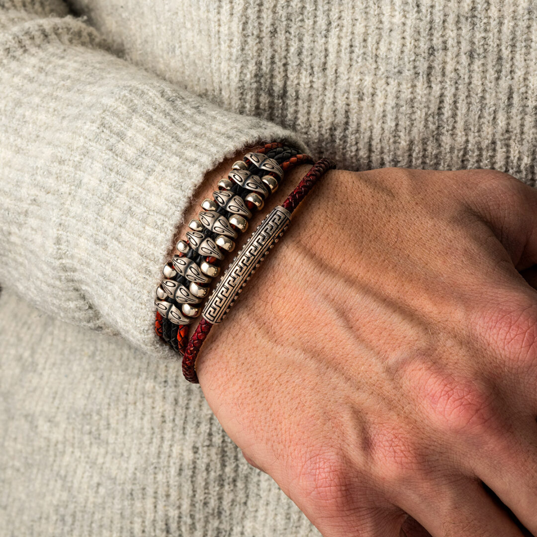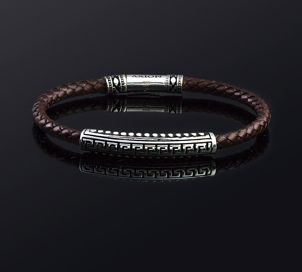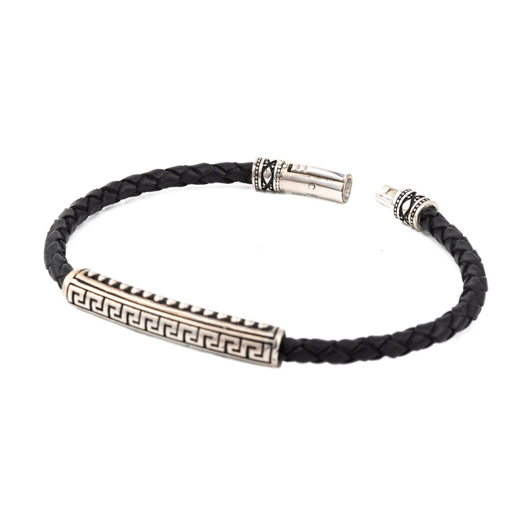 Bracelet with Sterling Silver with greek motifs and braided genuine leather