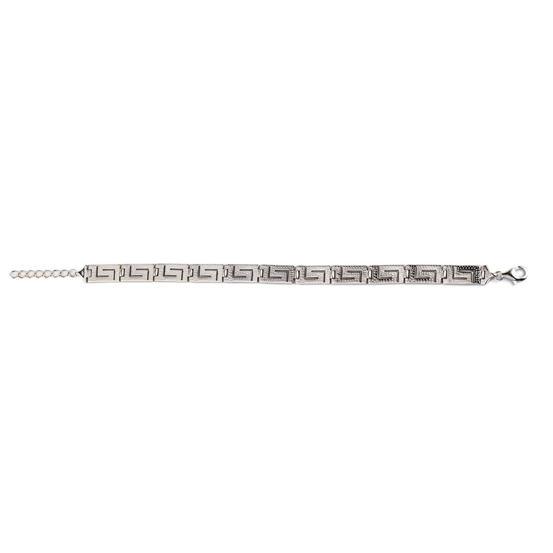 A sterling silver bracelet featuring the meander symbol.