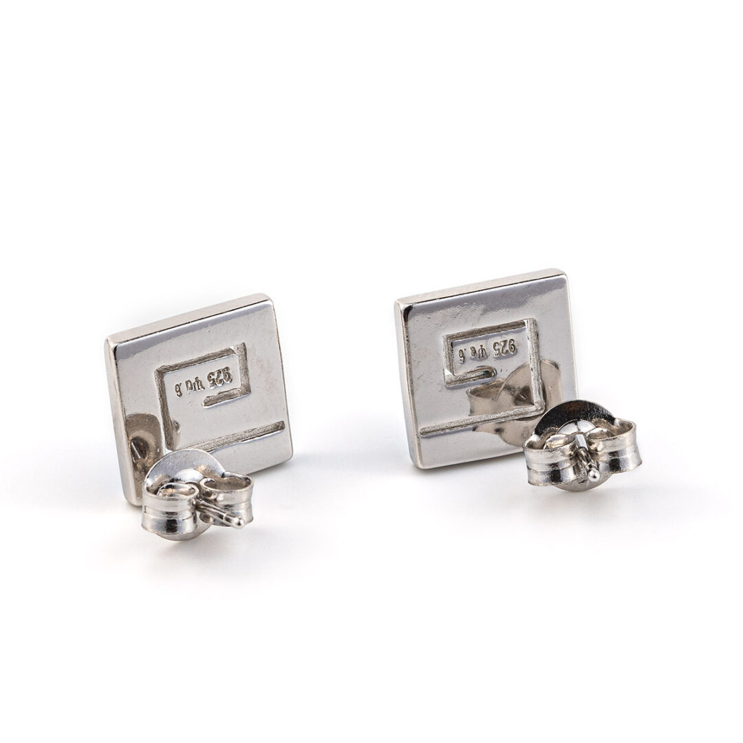 Meander Stud Earrings – 925 Sterling Silver with Opal