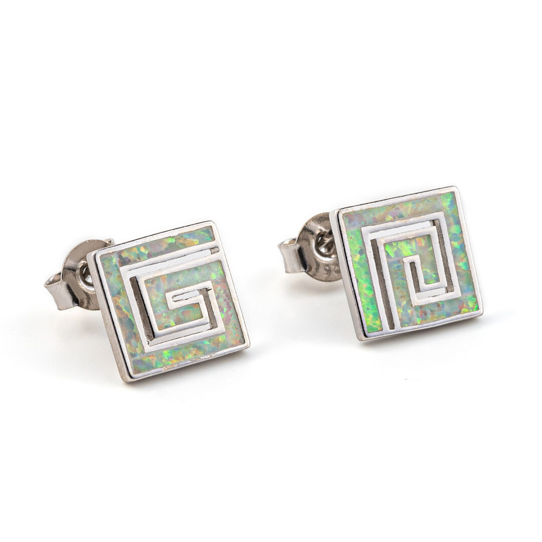 Meander Opal Stud Earrings – 925 Sterling Silver