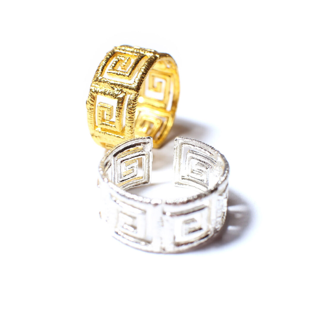 Adjustable ring with recurrent Greek key design, the symbol of long life and eternity.