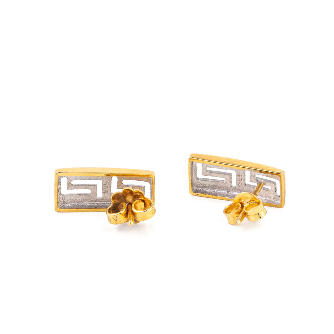 Meander Stud Earrings – 14K Solid Yellow Gold