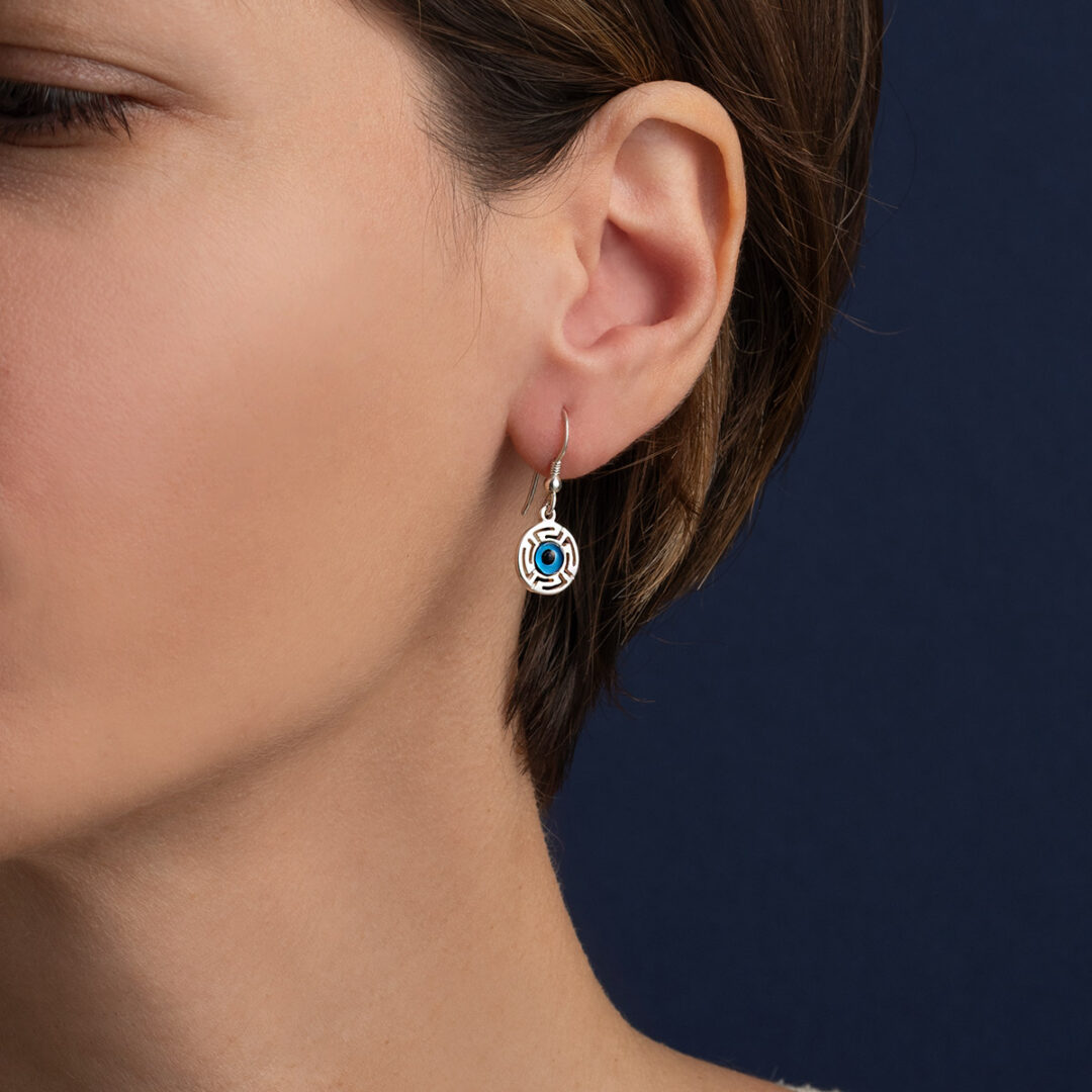 Meandros Earrings with Evil Eye – 925 Sterling Silver