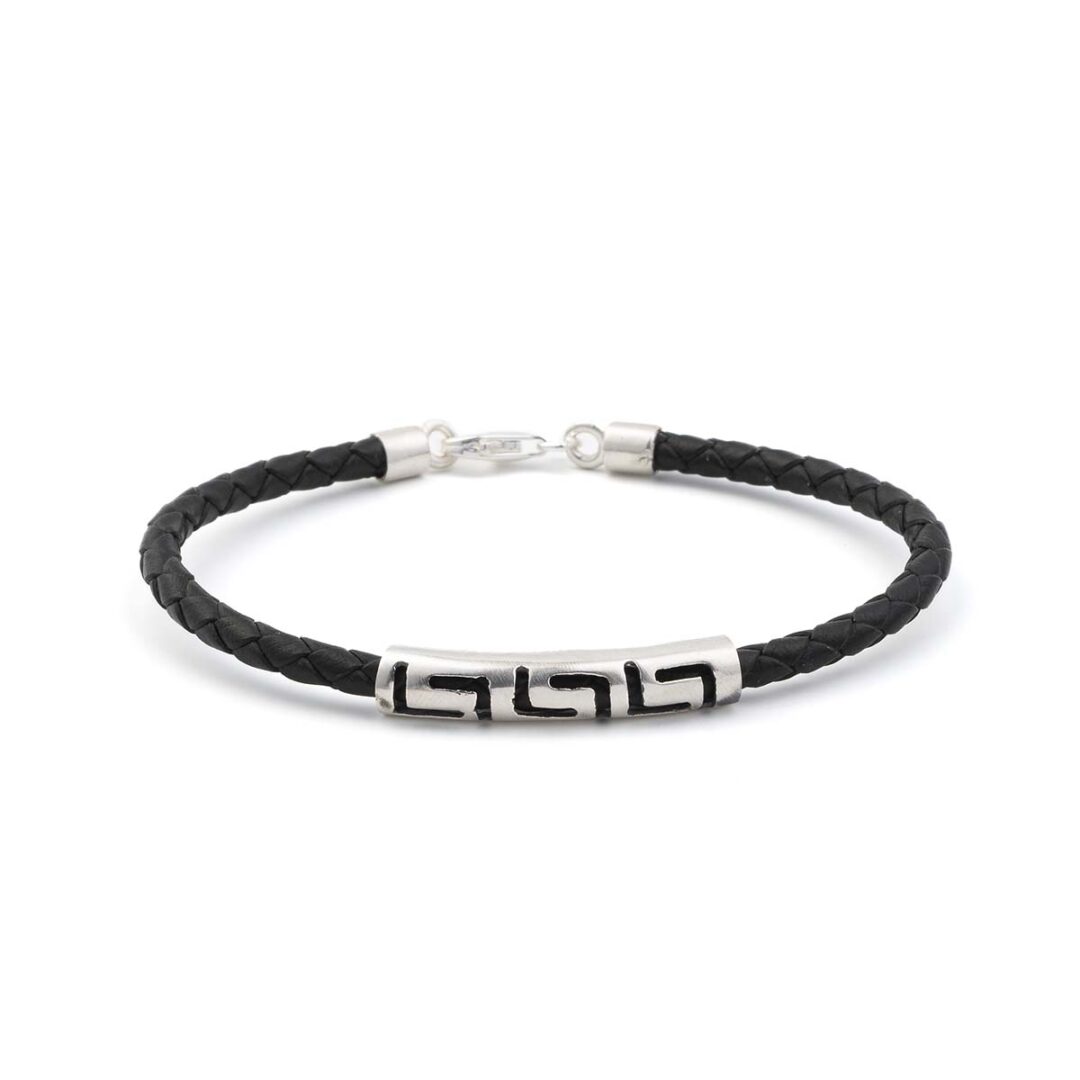 Meandros Greek Key Leather Bracelet – Sterling Silver