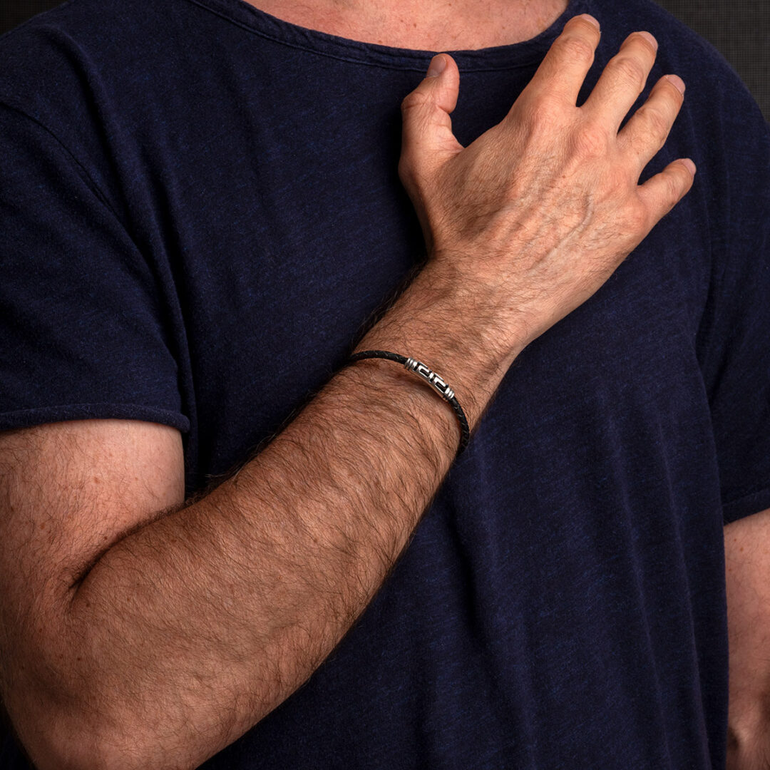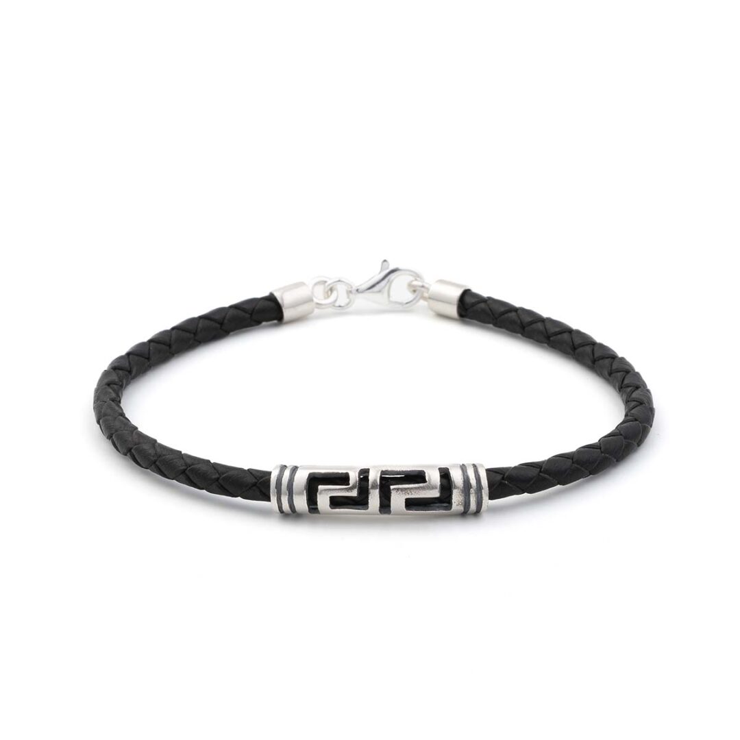 Meandros Thin Leather Bracelet – Sterling Silver