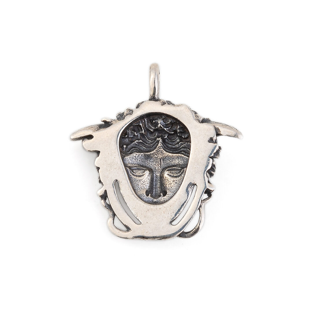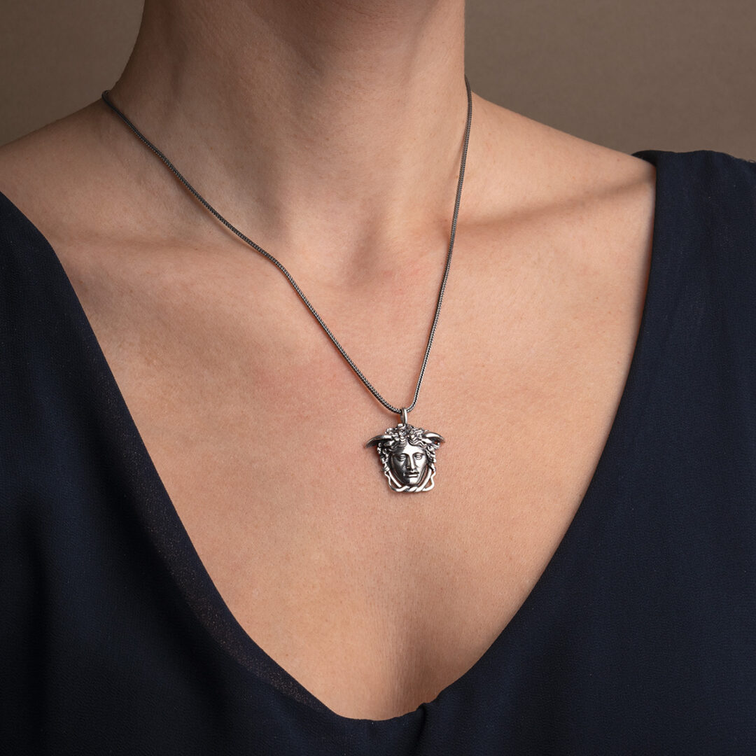 The chain shown in the second picture is our 925 Sterling Silver Oxidised Wheat Chain (not included).