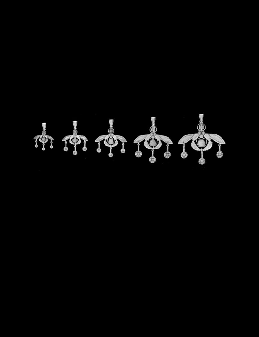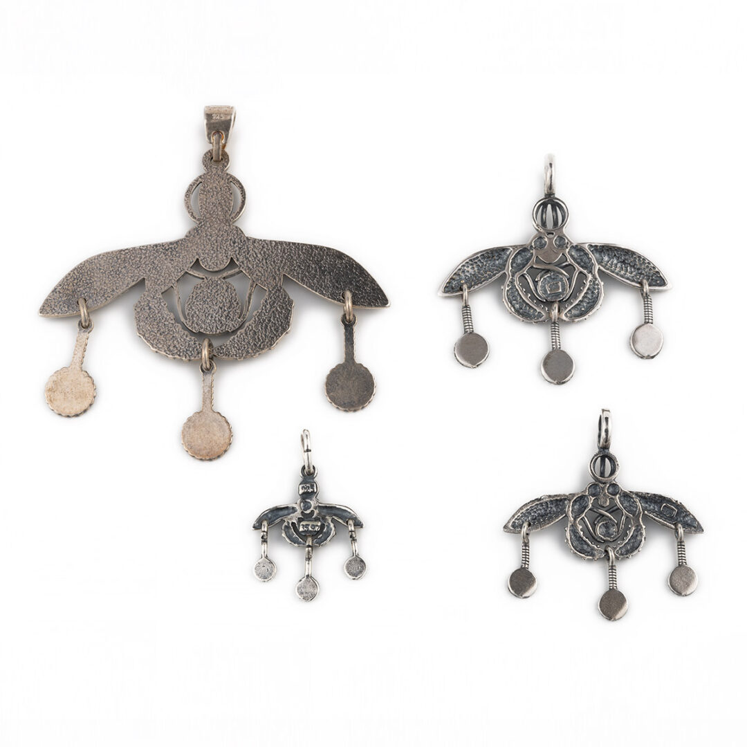 This pendant is in the shape of two bees, or wasps, storing away a drop of honey in a comb.