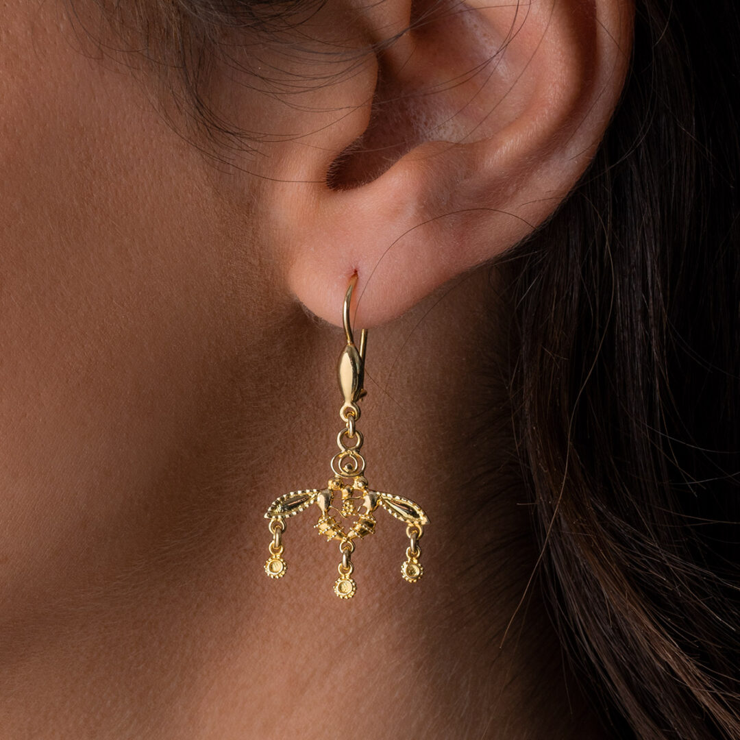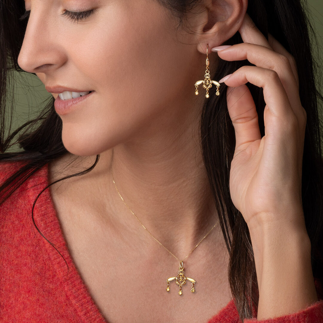 Minoan Malia Bees Dangle Earrings – 14K Solid Yellow Gold