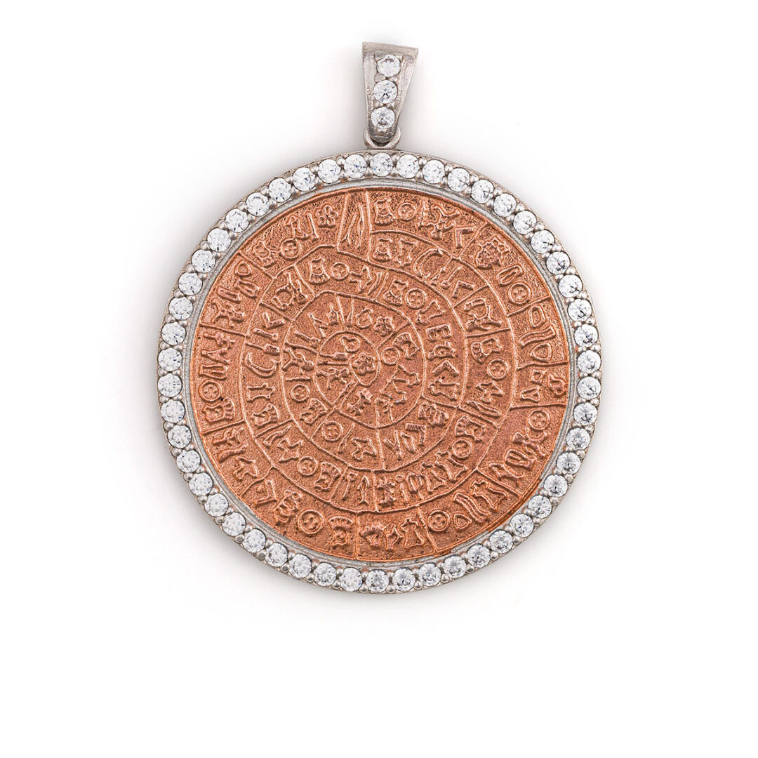 Minoan Phaistos Disc Pendant – 925 Sterling Silver Rose Gold Plated