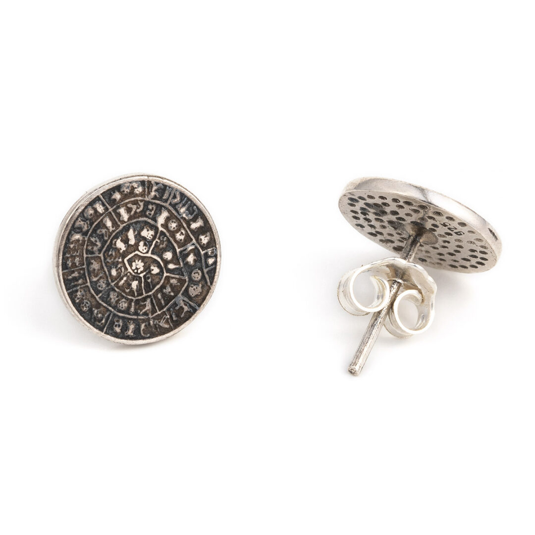 Minoan Phaistos Disc – Sterling Silver Stud Earrings
