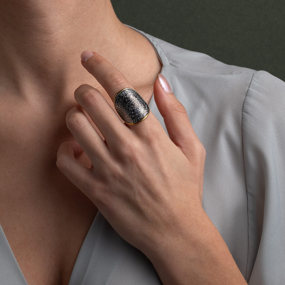 This beautiful ring represents the disc of Phaistos.