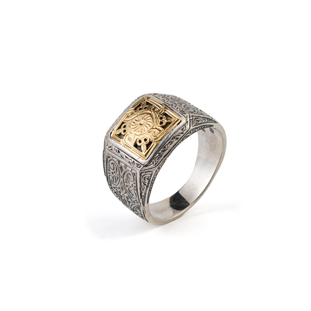 Monastiraki men Ring in 18K Gold and Sterling Silver