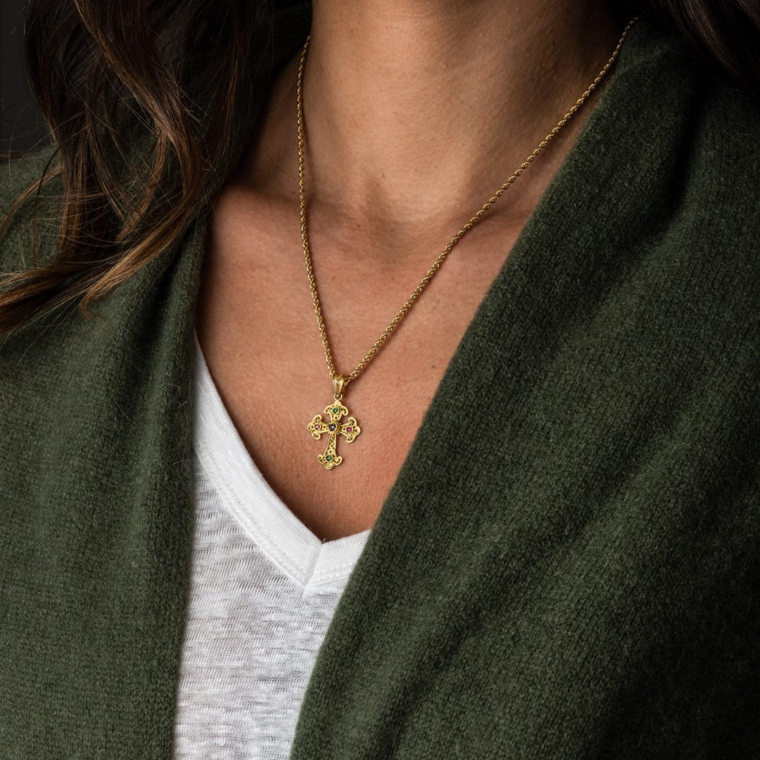 Multi precious Cross in 18K Gold