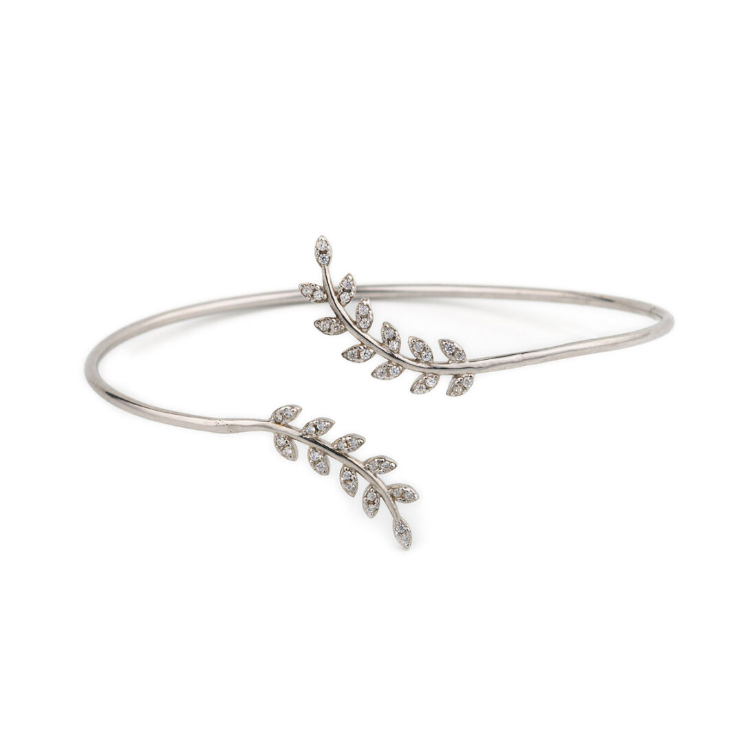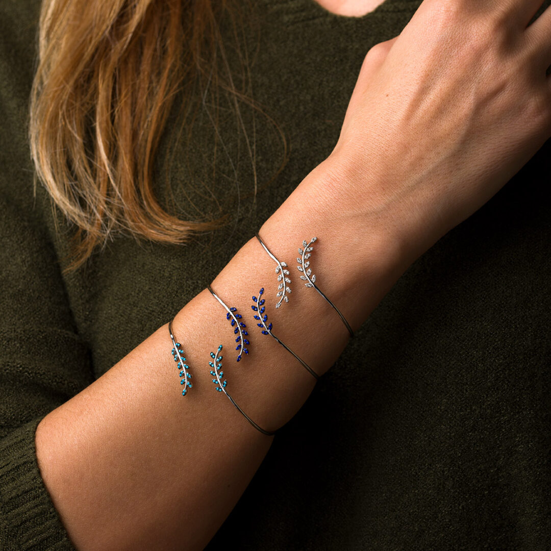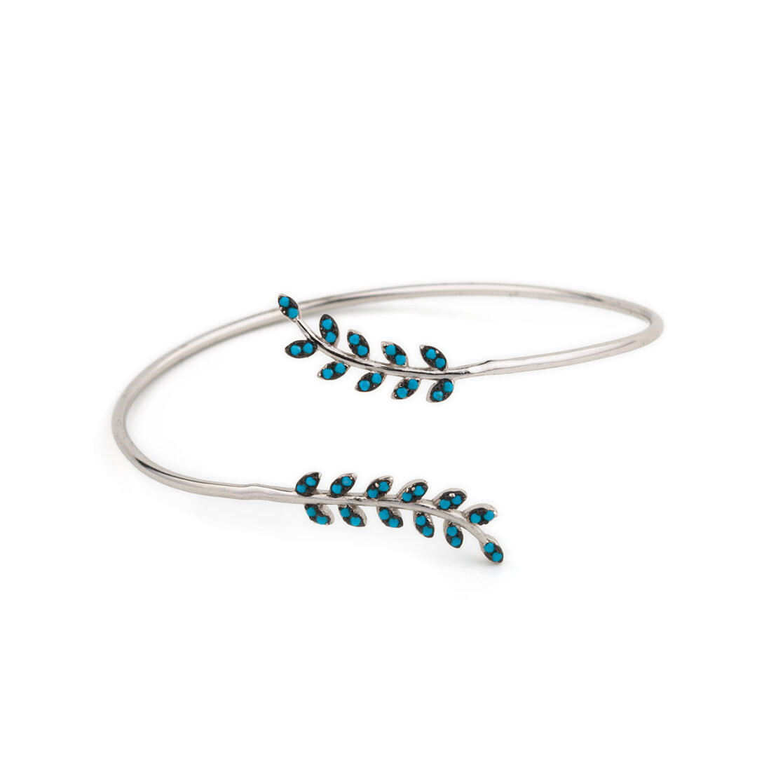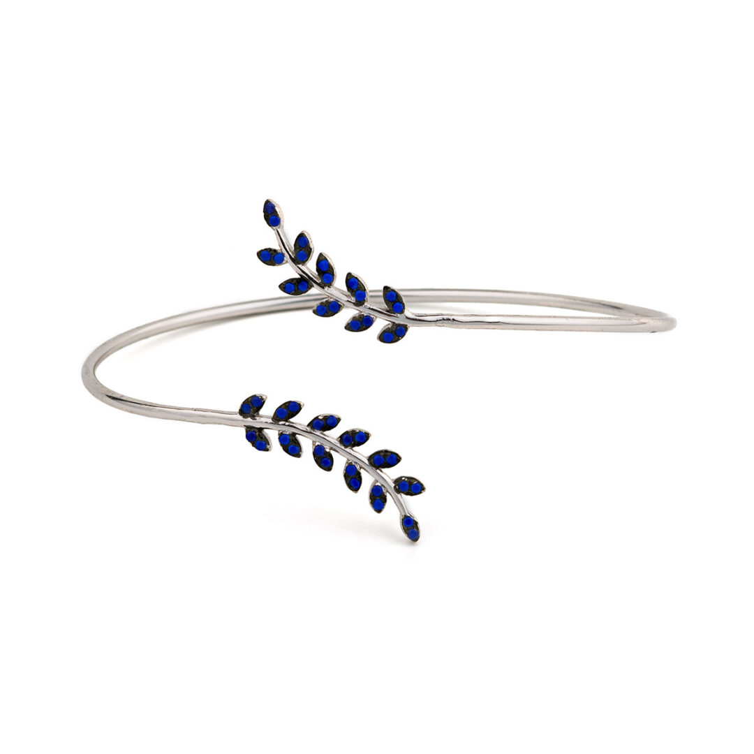 A bangle bracelet with olive leaves, decorated with lapis.
