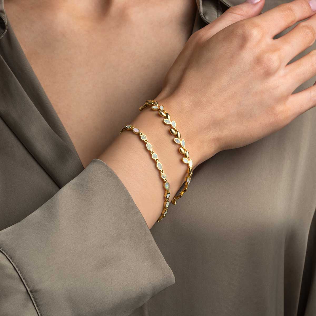 Olive Bracelet with White Opal in 925 Sterling Silver