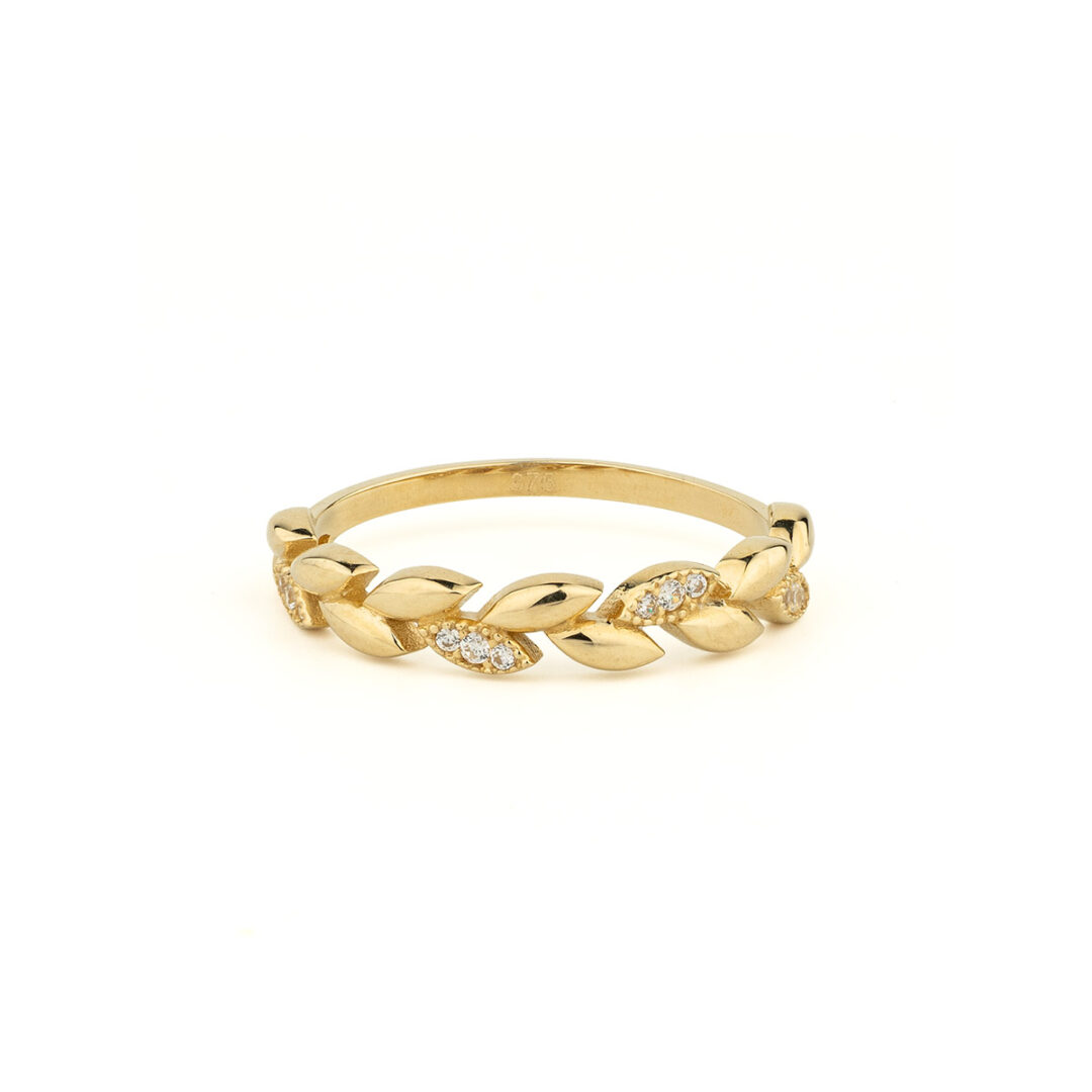Olive Branch Ring with Zircon – 9K Yellow Gold Greek Symbol Jewelry