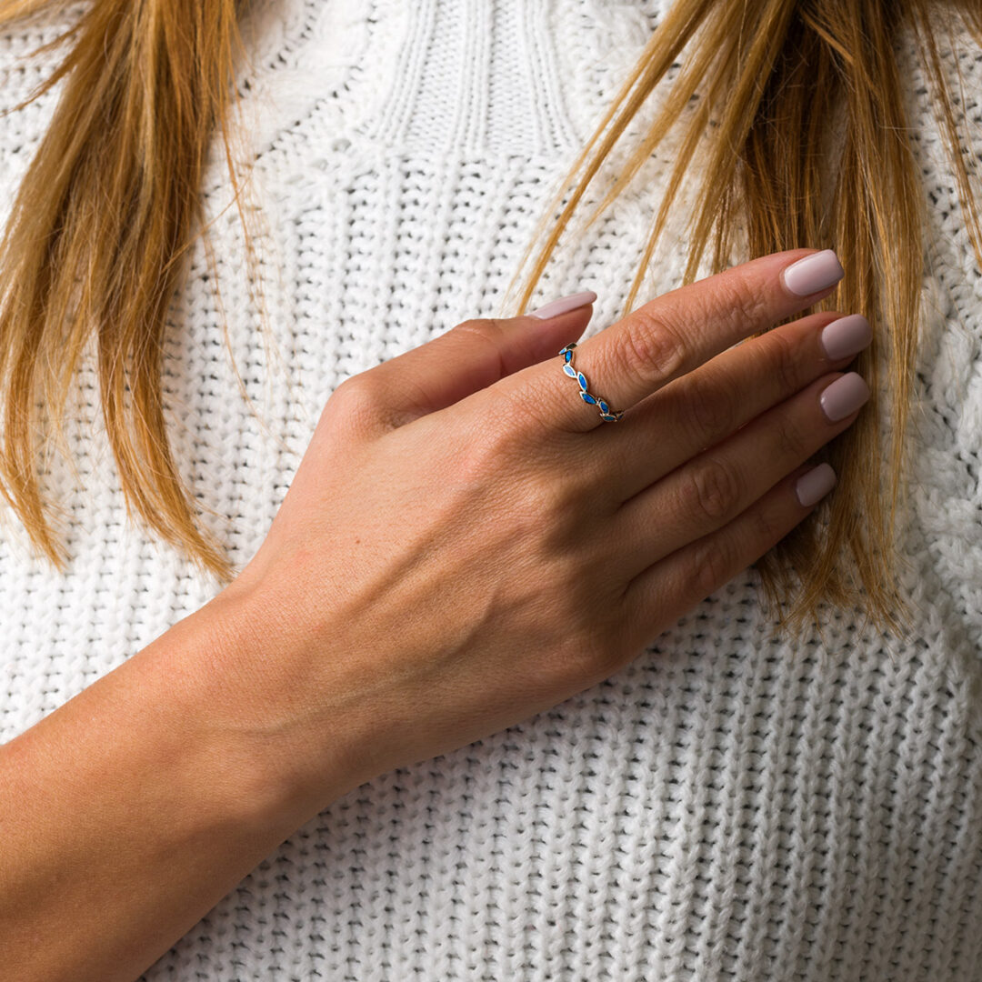 Olive Leaf Blue Opal Ring- 925 Sterling Silver