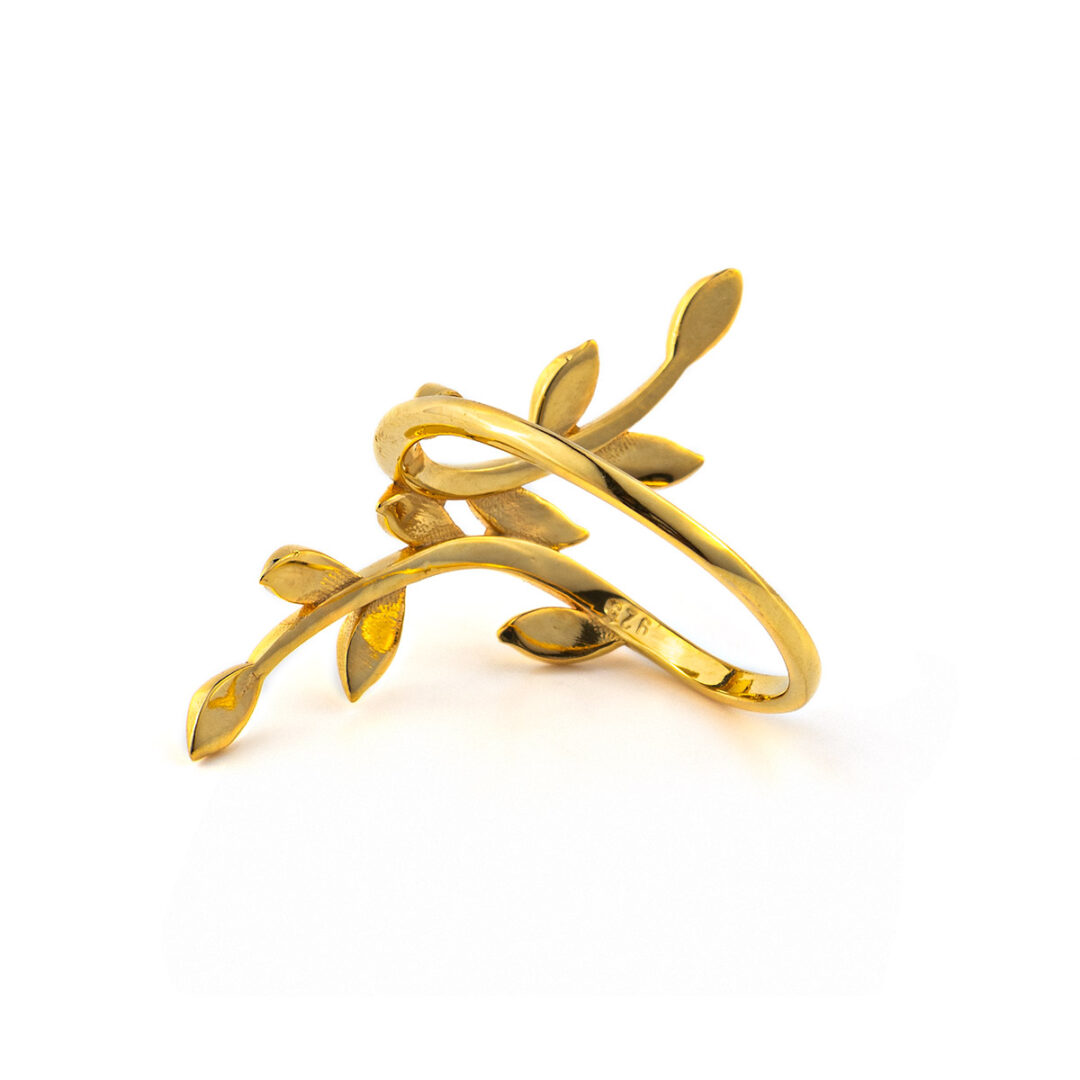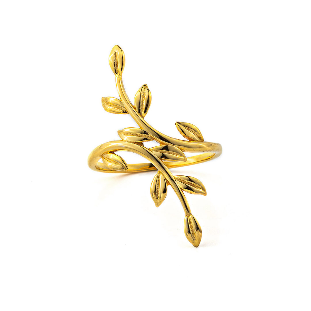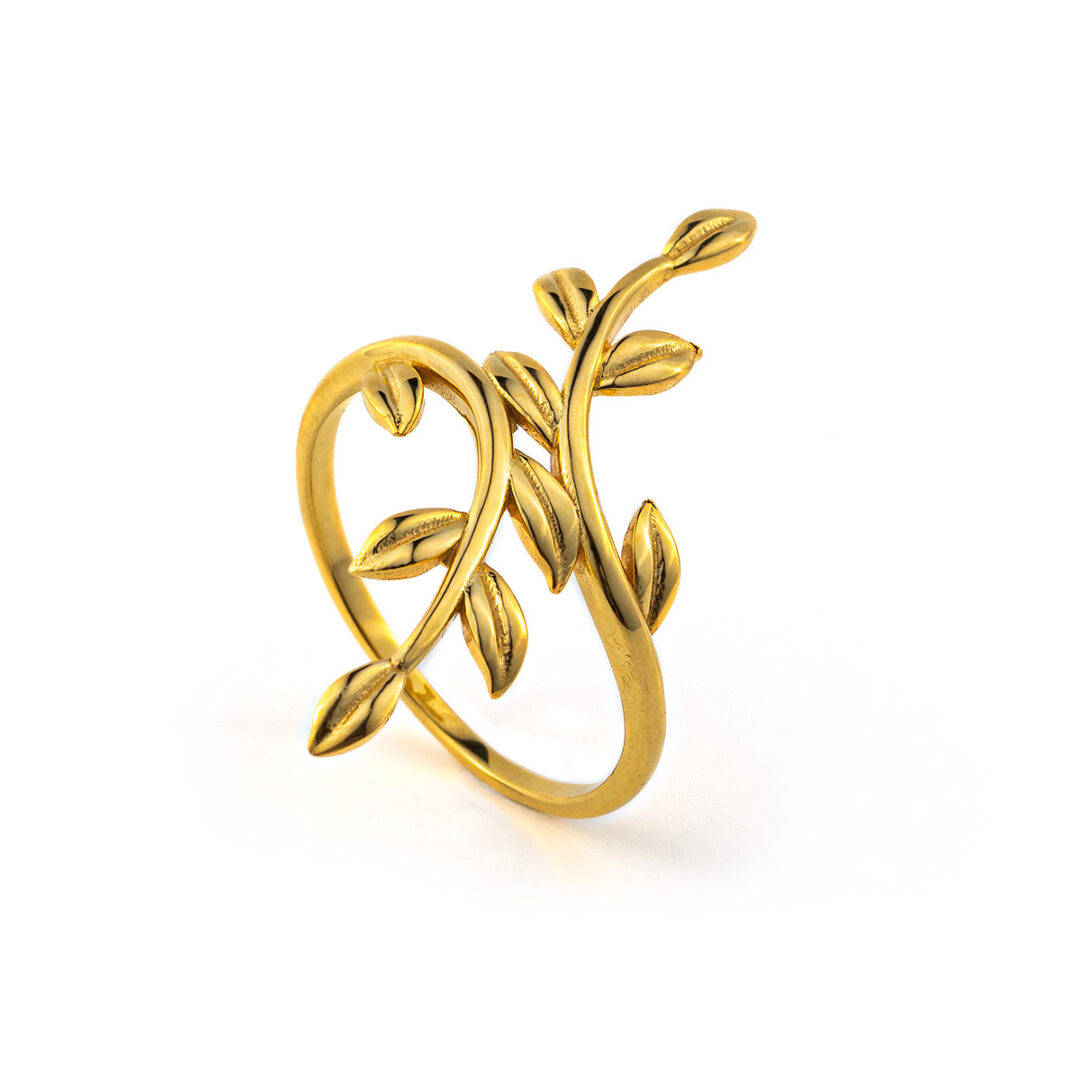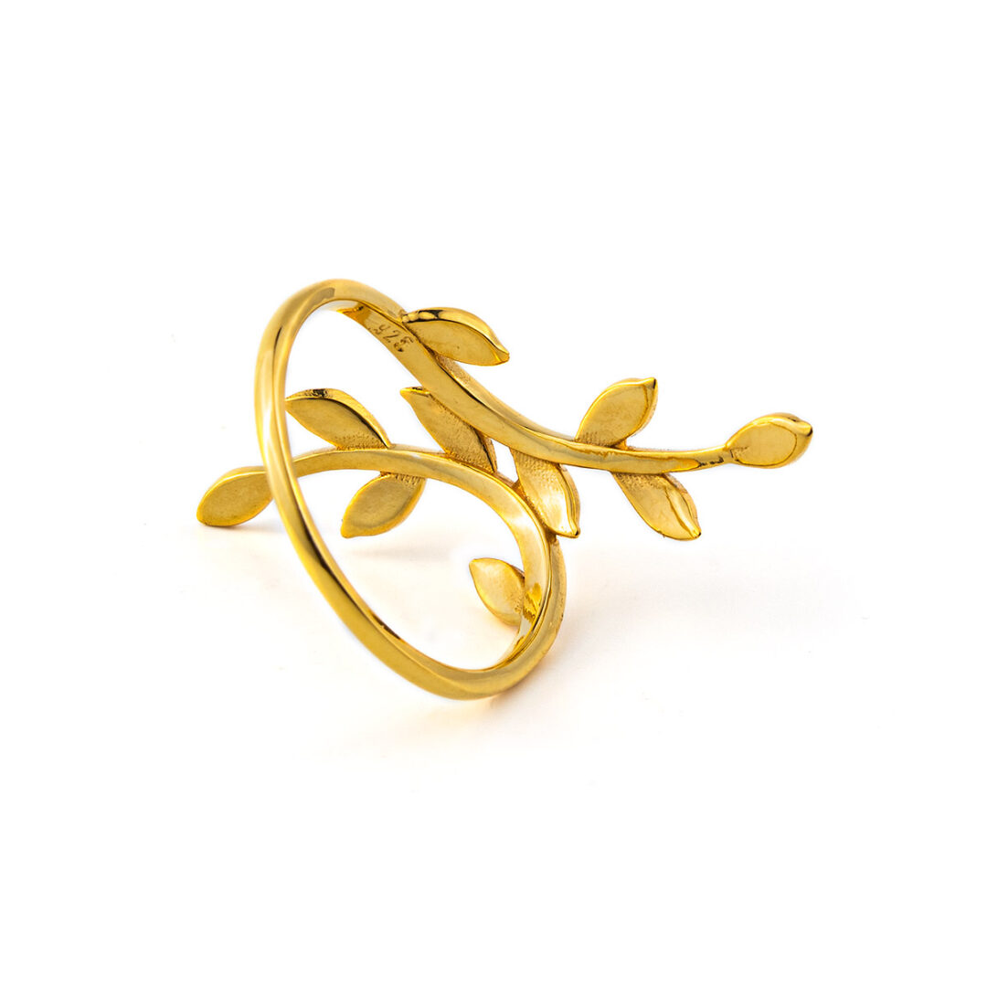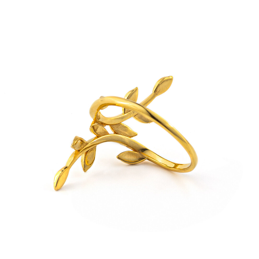 Olive Leaf Branch Ring – 14K Solid Yellow Gold