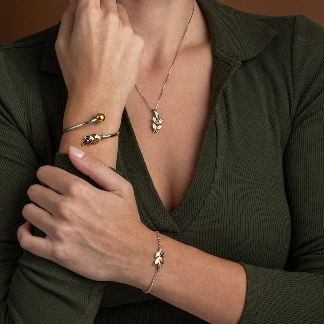 Olive Leaf Chain Bracelet – 14K Gold and Sterling Silver