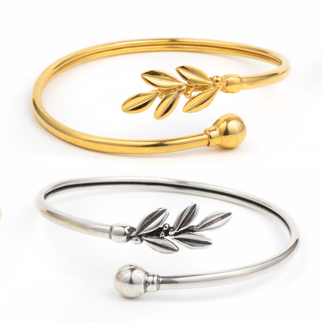 Olive Leaf Hinge Bracelet – 925 Sterling Silver and Gold Plated