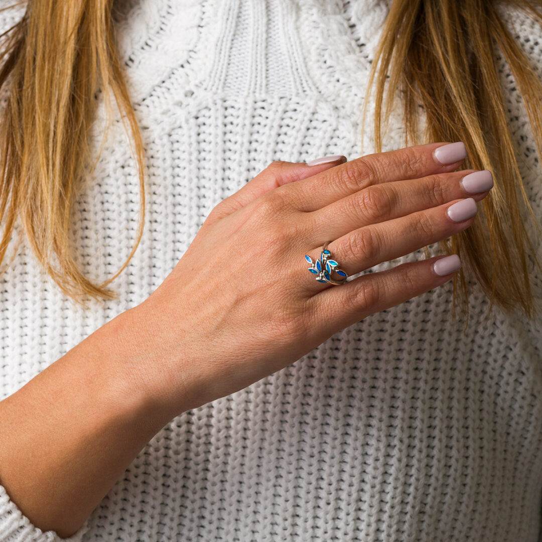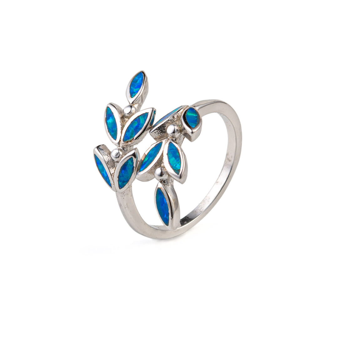 Olive Leaf Ring- 925 Sterling Silver Blue Opal