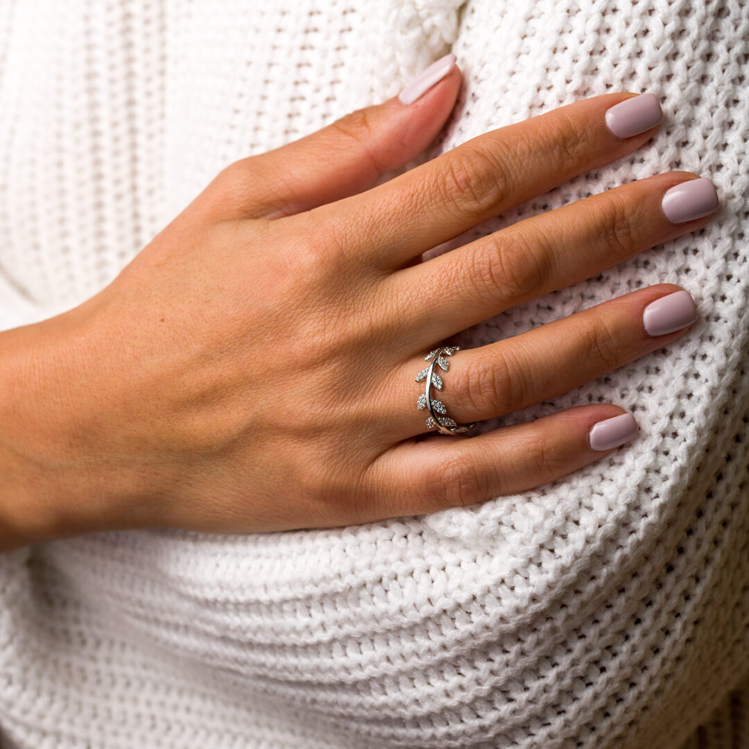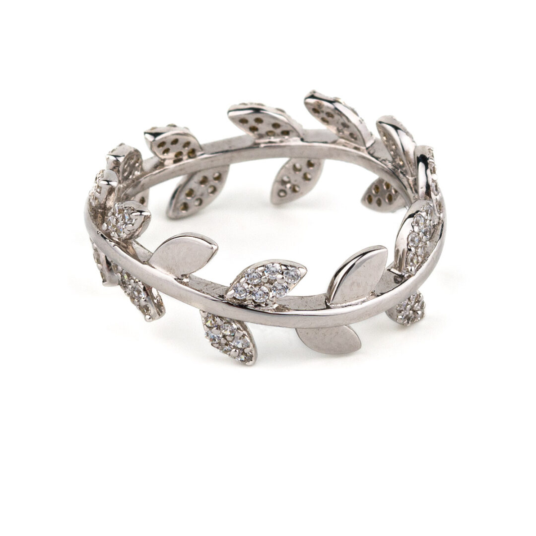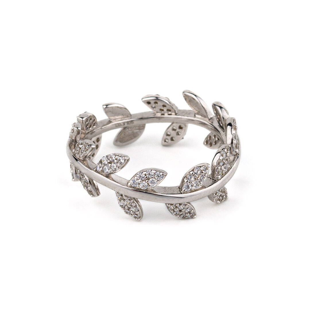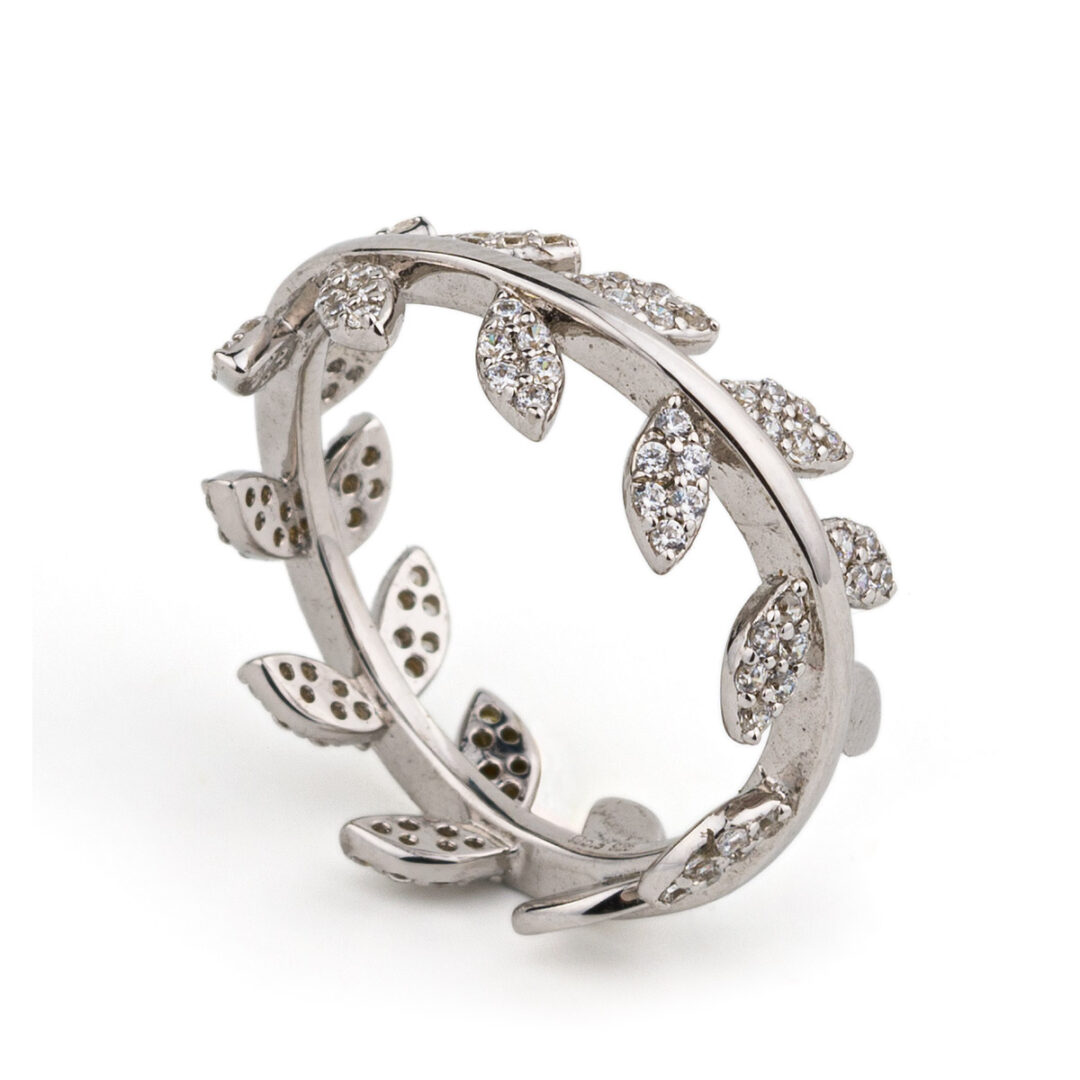 Olive Leaf Zircon Ring – 925 Sterling Silver