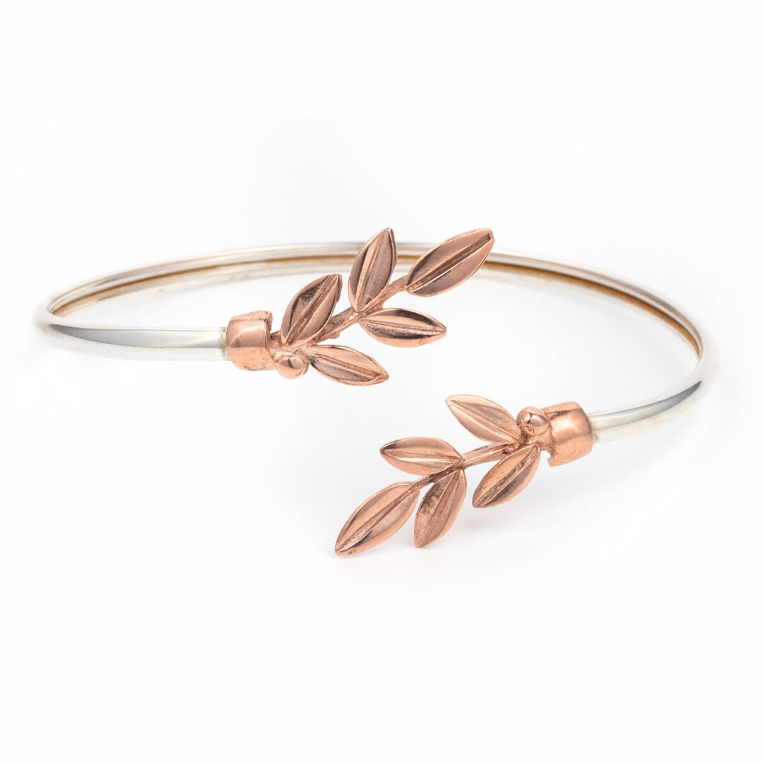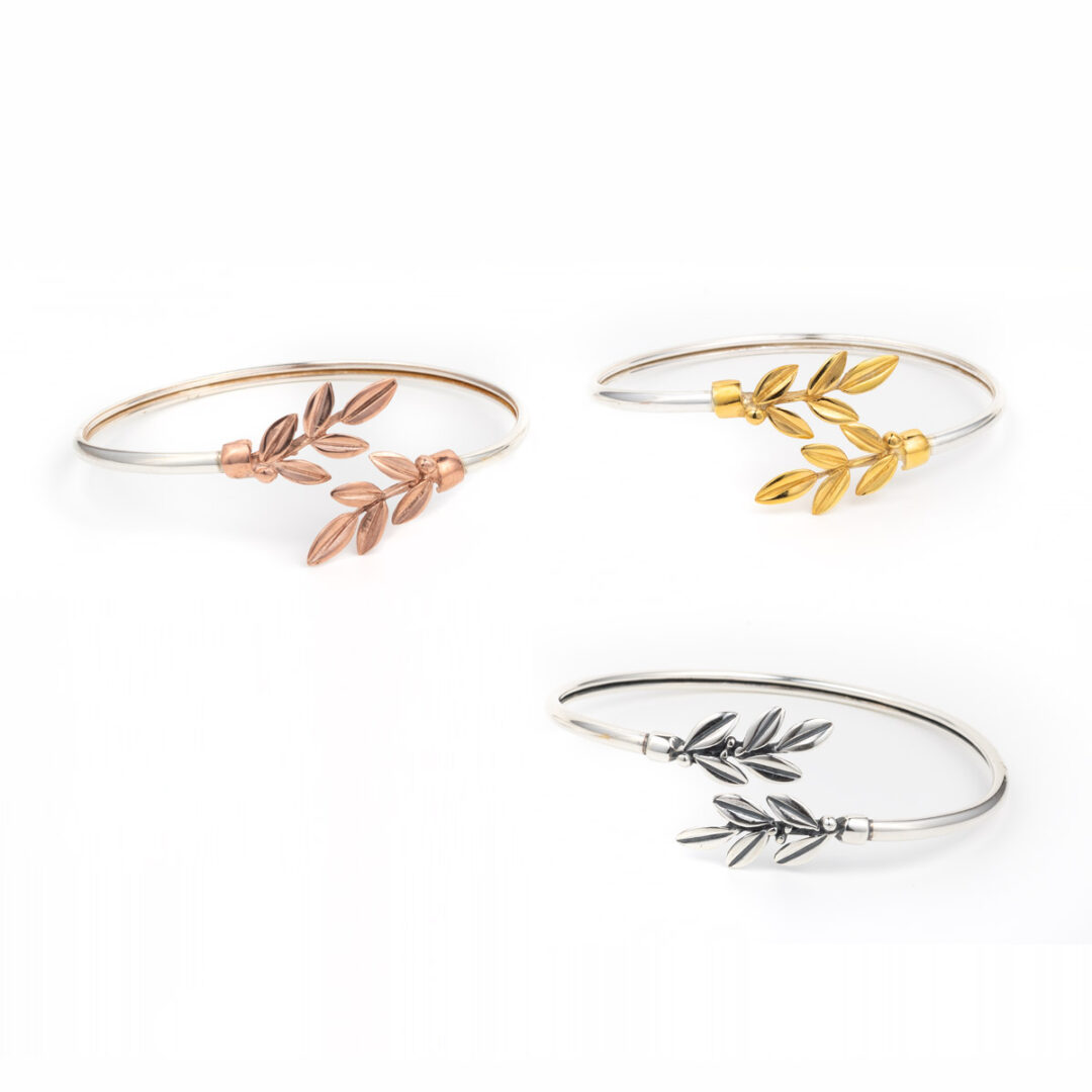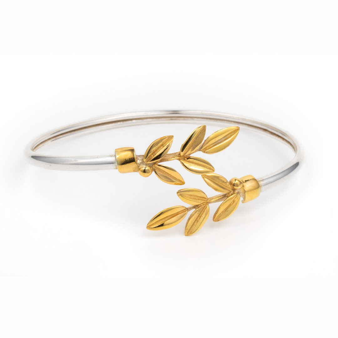 Olive Leaves Hinge Bracelet – 925 Sterling Silver and Gold Plated
