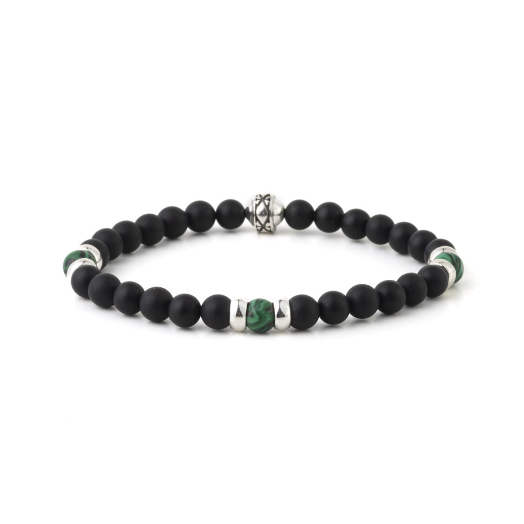 Onyx, Malachite and Sterling Silver Beaded Bracelet