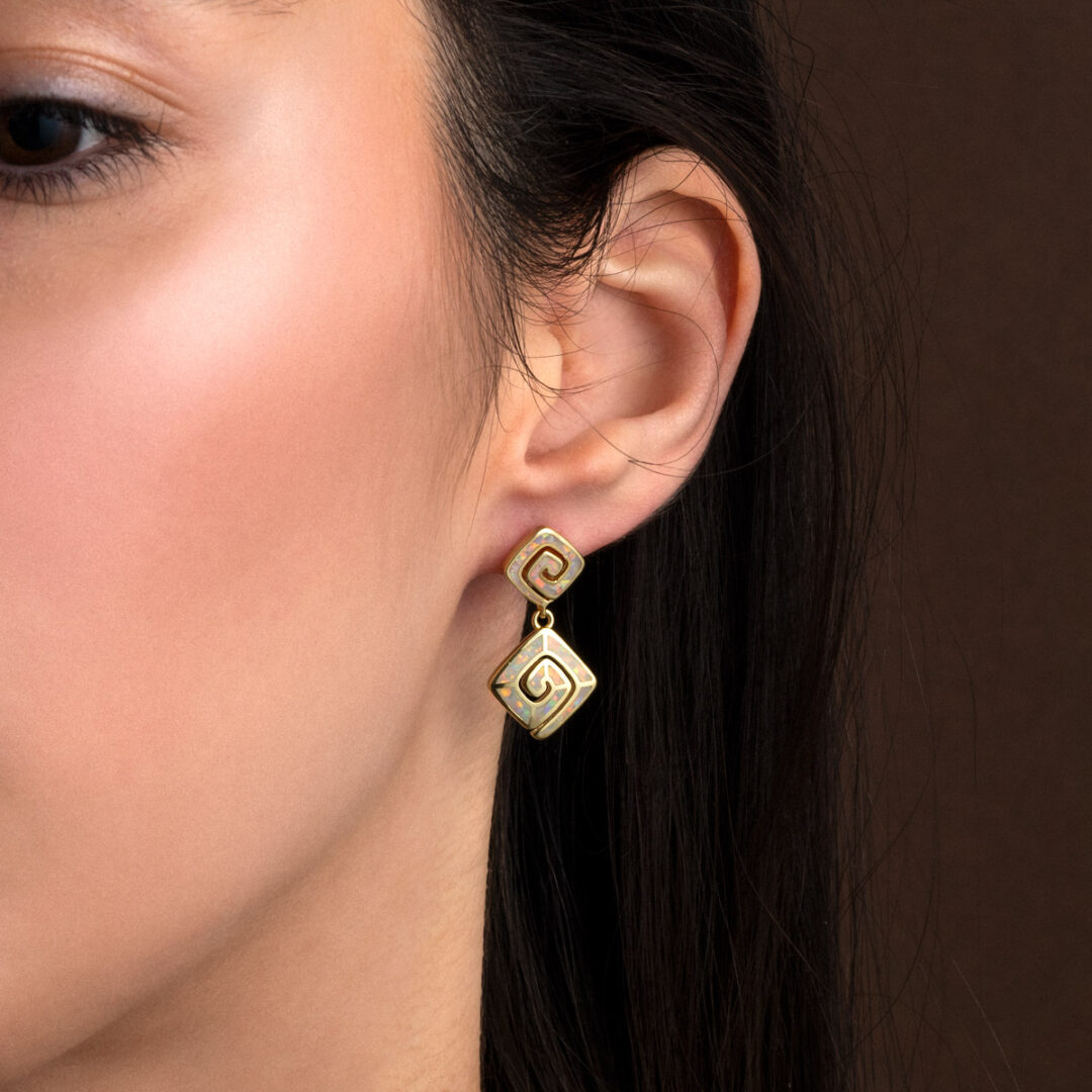 Opal Meander Dangling Earrings – Sterling Silver 925 Gold Plated