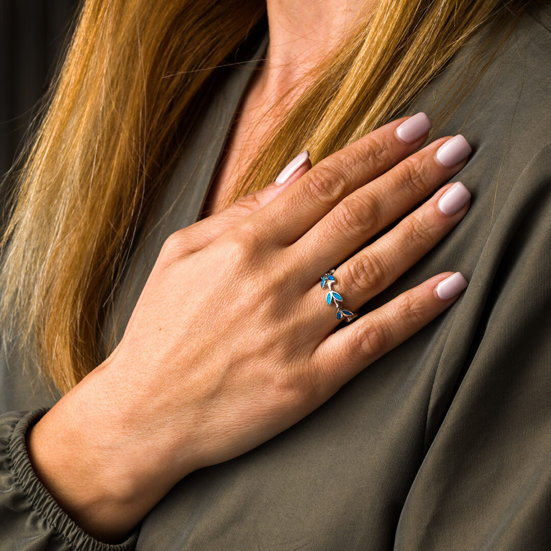 Opal Wreath Leaf Ring- 925 Sterling Silver
