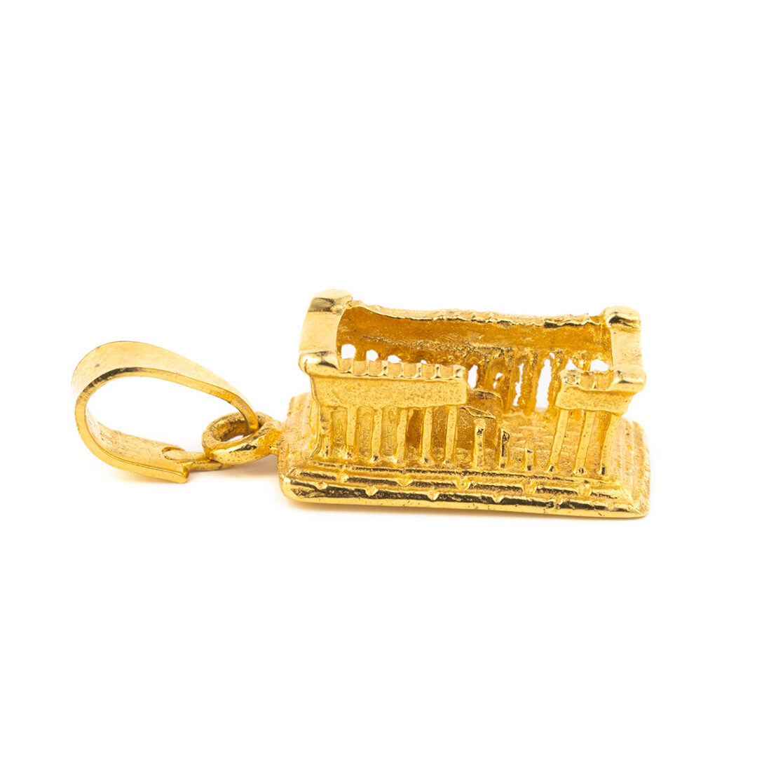 Yellow gold charm depicts the monument of the Parthenon, the main monument in Acropolis. Built in honor of the goddess Athena, and is the brightest monument of the Athenian.