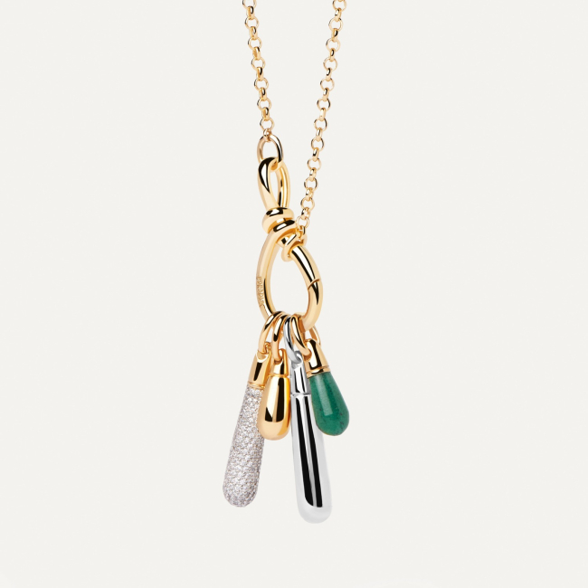 The Icons speak to your individuality and celebrate the art of personalization. Featuring distinctive drop shaped natural gemstones like labradorite and aventurine as well as hand-set pavé, these pieces are the perfect blend of design and craftsmanship. At the core of the collection lies the Drop pendants, a canvas for creativity to stack on hoops or necklaces. Embrace an ever-changing collection and unlock a new jewelry language.