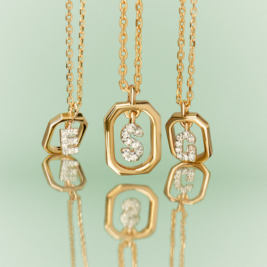 Mini and featherlight to wear, the Mini Letters were designed to make a statement despite their petite silhouette. Contemporary pieces with a vintage soul, the design features a floating shimmering letter framed by an octagon.